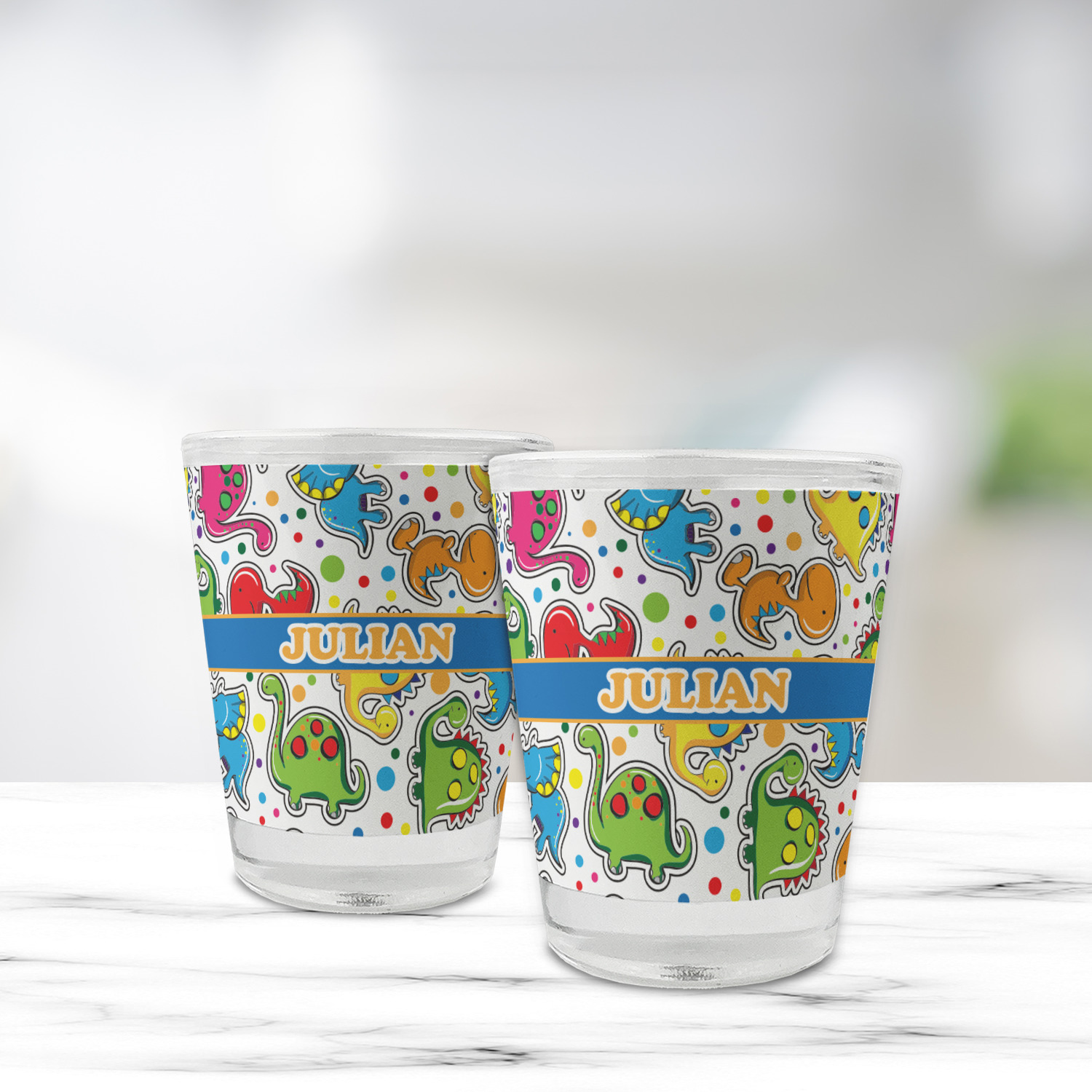 Made with frosted glass, these shot glasses are printed in full color with the design of your choice. They are a standard 1.5oz shot glass and are 2.4" tall. The print is wrapped around the shot glass in a full wrap and boldly displays your customization.
