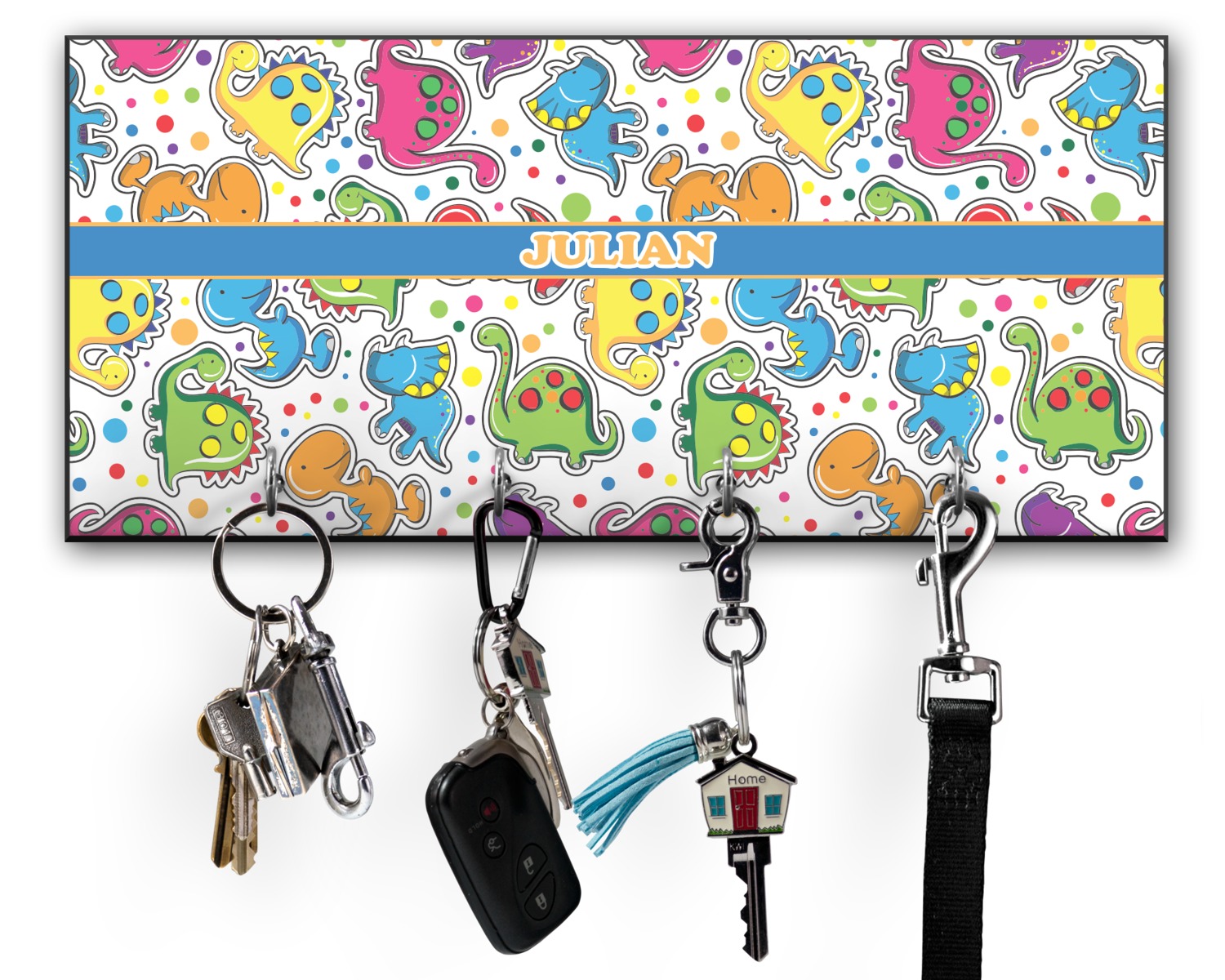 This 11" x 5" key hanger is made of sturdy wood and has four metal hooks lining the bottom. This is the perfect size for a family with several drivers. Not only can you hang keys on it though, but pet leashes and other small items. The board is black on the sides and back and is printed with the design of your choice on the front.