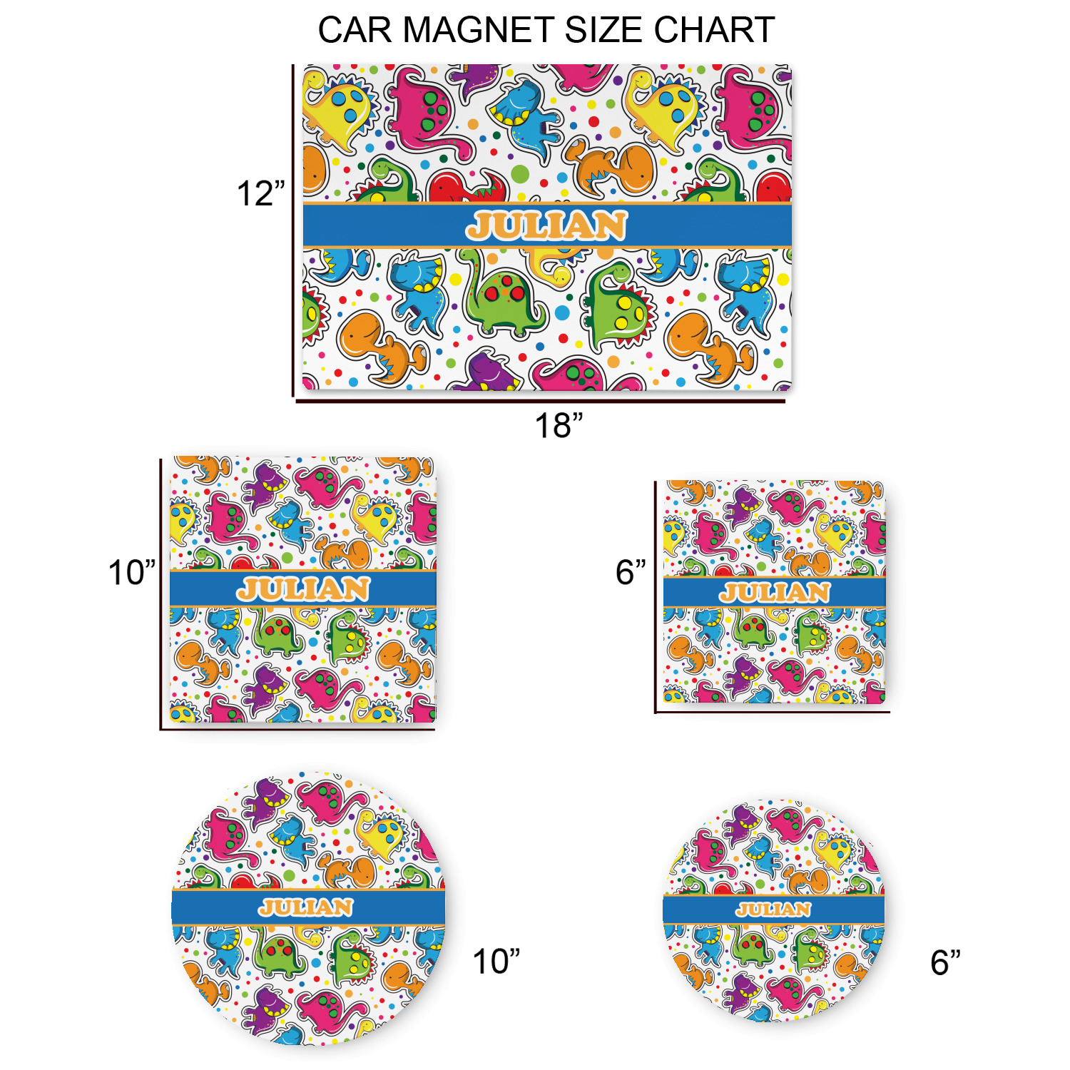 Your personalized large car magnet measures at 18 inches wide by 12 inches tall. They are 1 millimeter thick, which is considered, within the industry, as the ideal thickness for automobile magnets. The magnetic car decals will adhere to any smooth, ferrous metal surface of your cars body, such as the trunk door or a side panel.