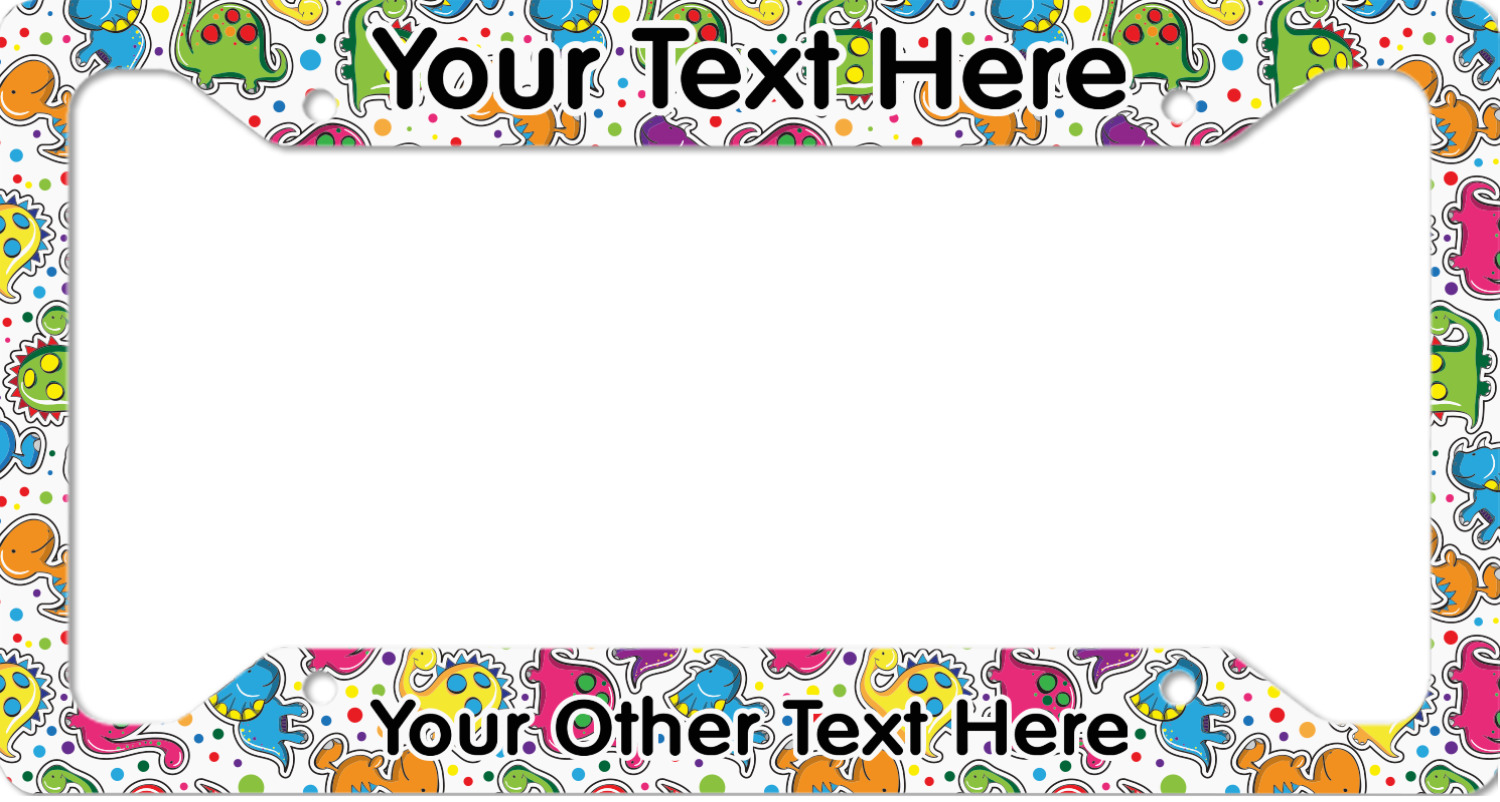 Each customizable license plate frame is made from a fine, yet sturdy aluminum material that measures approximately 6.5 x 12.15 inches, accommodating most standard license plates. The thickness allows the license plate frame to adhere completely to your license plate for a seamless look. We carry 3 styles of license plate frames to customize - Style A has texts on top and bottom, Style B offers texts on top and bottom as well as a full fill bottom border, and Style C offers text at the bottom only. The personalized license plate frame comes with four mounting holes for easy installation! We print each custom design across the frame with a glossy finish.
