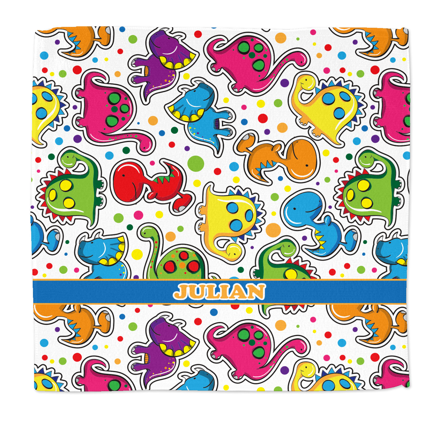 Colorful dinosaurs spring to life in this whimsical and comical versatile pattern. Set on a backdrop of multicolored polka dots these dinosaurs are sure to delight your little ones. Using bright colors of Blue, red, green, purple, yellow, and pink these dinosaurs are sure to stir up your little one's imagination in no time.