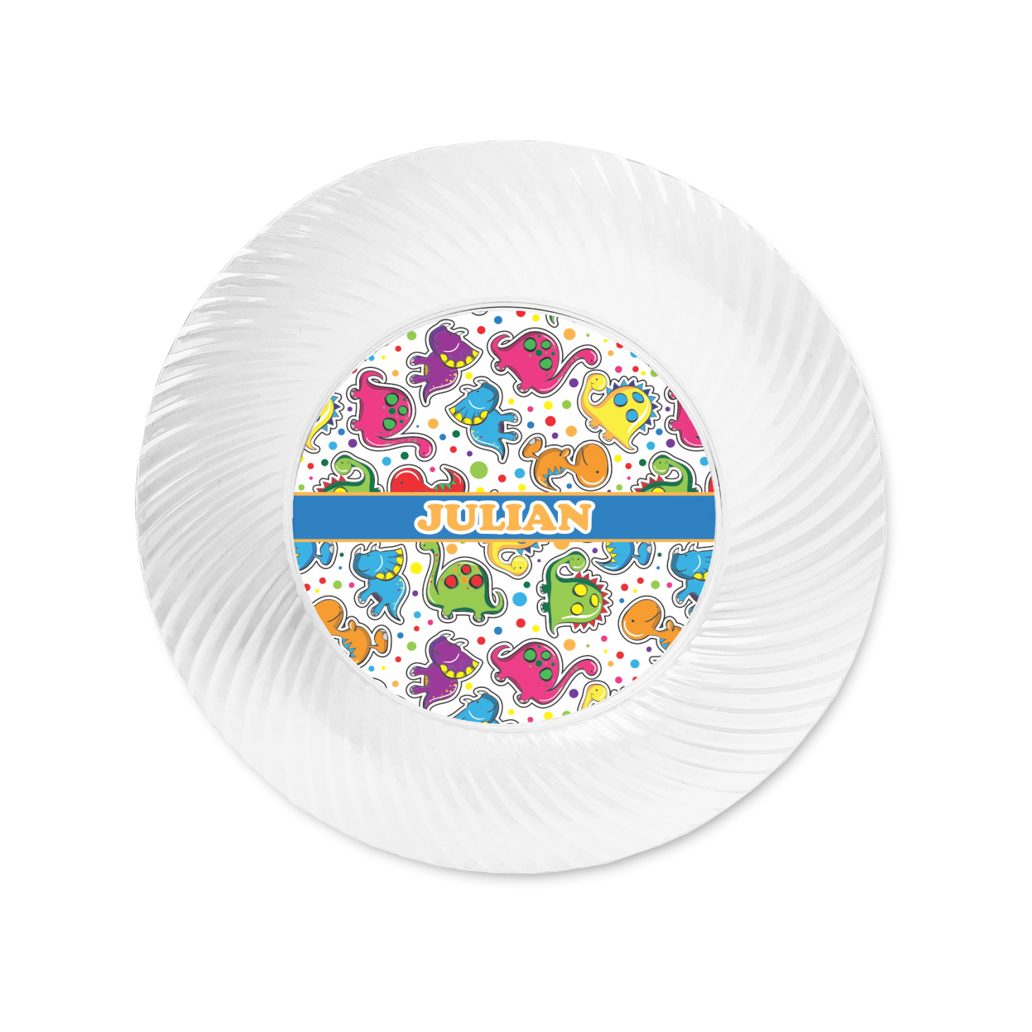 Made from a beautiful clear plastic plate as a base, your design is printed to the underside of the plate. The outside of the plate has a classic swirl texture to it for a high quality look and feel.