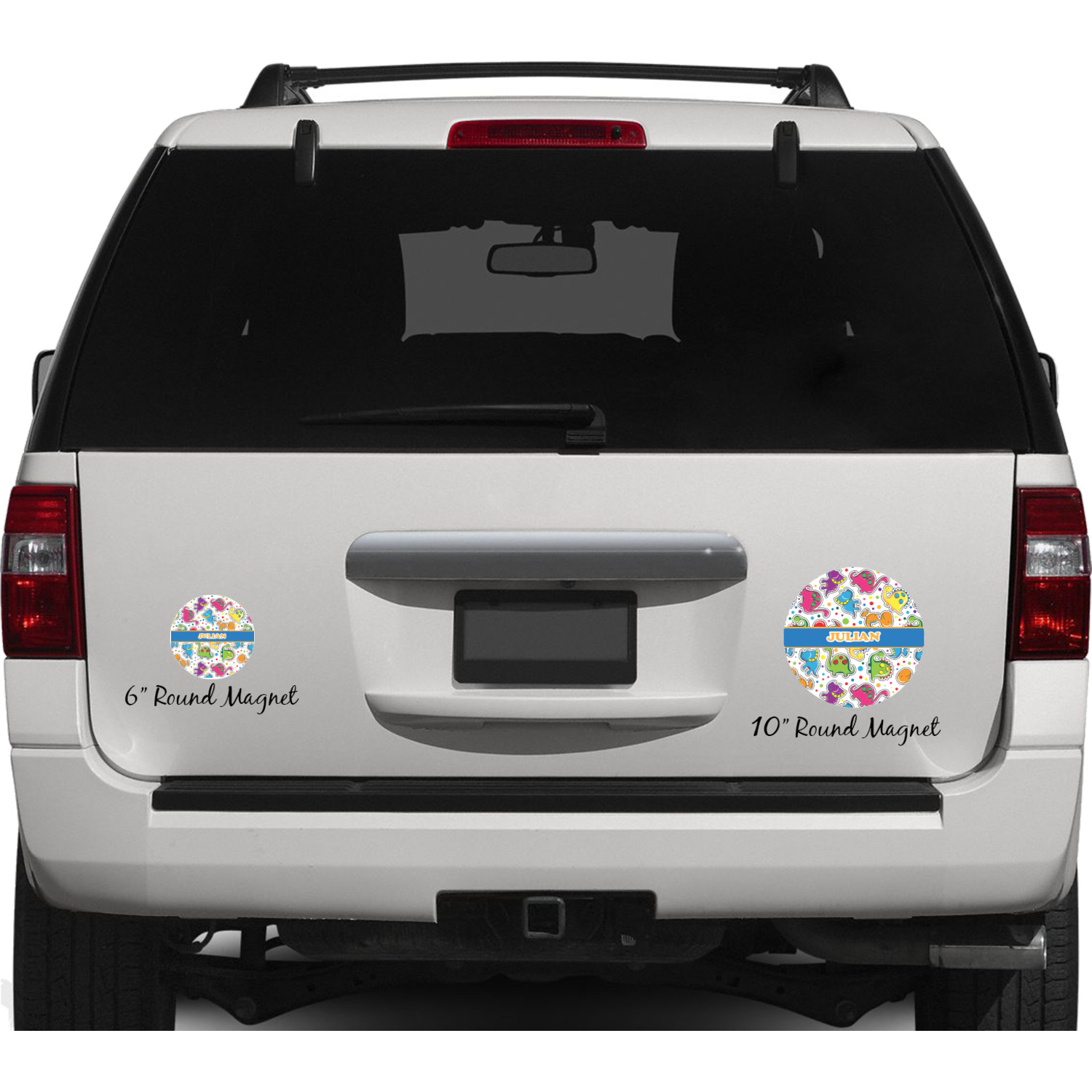 Your personalized car magnets are available for purchase in two shapes and two sizes. We carry round and square editions; each shape can either be 6 by 6 inches, or 10 by 10 inches, depending on your needs. Both versions are 1 millimeter thick, which is considered, within the industry, as the ideal thickness for automobile magnets. The magnetic car decals will adhere to any smooth, metal surface of your cars body, such as the trunk door or a side panel. However, please note that some vehicles are constructed from fiberglass bodies, which prevents the adhesion of anything magnetic. We advise that you test your vehicle before purchasing these magnets.