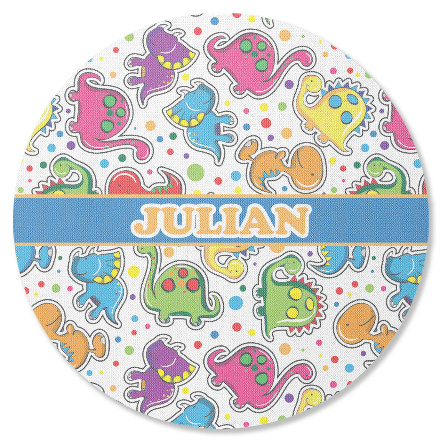 Colorful dinosaurs spring to life in this whimsical and comical versatile pattern. Set on a backdrop of multicolored polka dots these dinosaurs are sure to delight your little ones. Using bright colors of Blue, red, green, purple, yellow, and pink these dinosaurs are sure to stir up your little one's imagination in no time.
