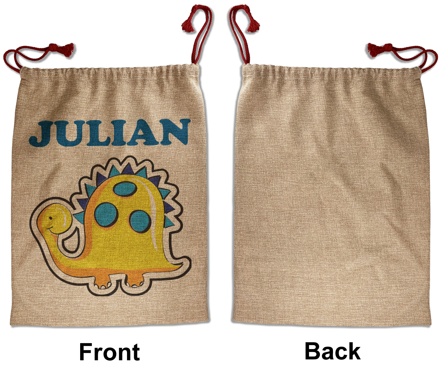 Our Santa sacks print your design on the burlap material giving it a nice rustic, natural design! The burlap material is also machine washable and wrinkle-free, so feel free to fold and store out Santa bags until the next time you need it! Secure your gifts with our red accent drawstring ties at the top of the sack so the mystery of your gift stays a surprise until Christmas day. We offer two types of printing- one side partial print or double-sided partial printing. Design and personalize your own Santa sack in time for the holidays!