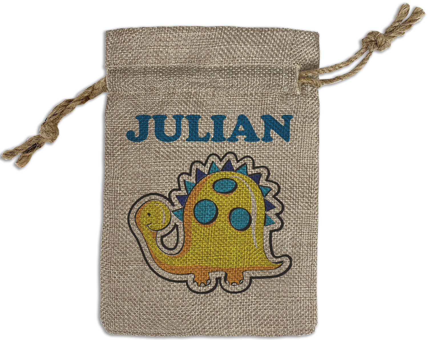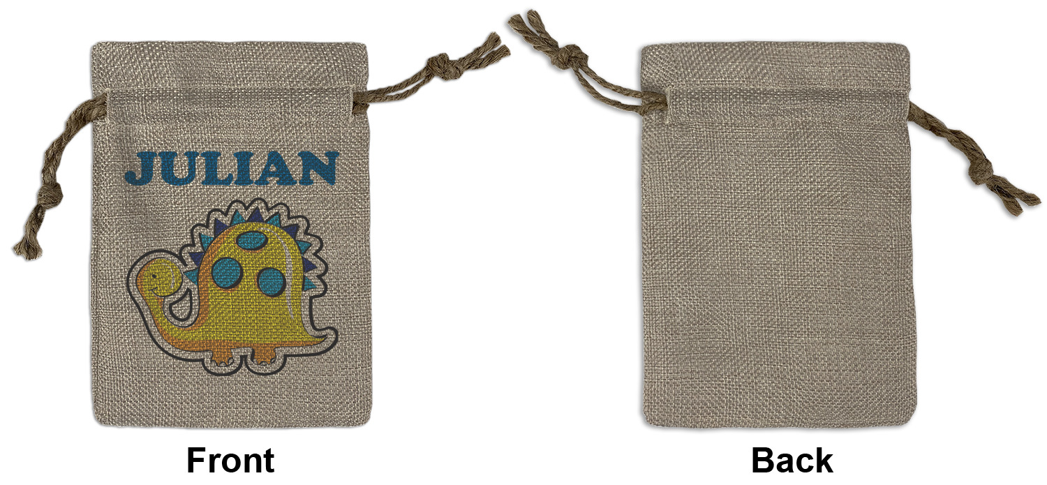 We sell our Burlap Gift Bags in 3 variant sized bags. Made with burlap polyester, each personalized bag can be secured with a twine drawstring pull. Your custom design is available to print on one side or both sides - completely up to you! The sizes of the bags measure approximately 4.5" x 6.5" for the smallest size, 6.5" x 8.0" for the medium size, and 6.5" x 13.5" for the large-sized bag.