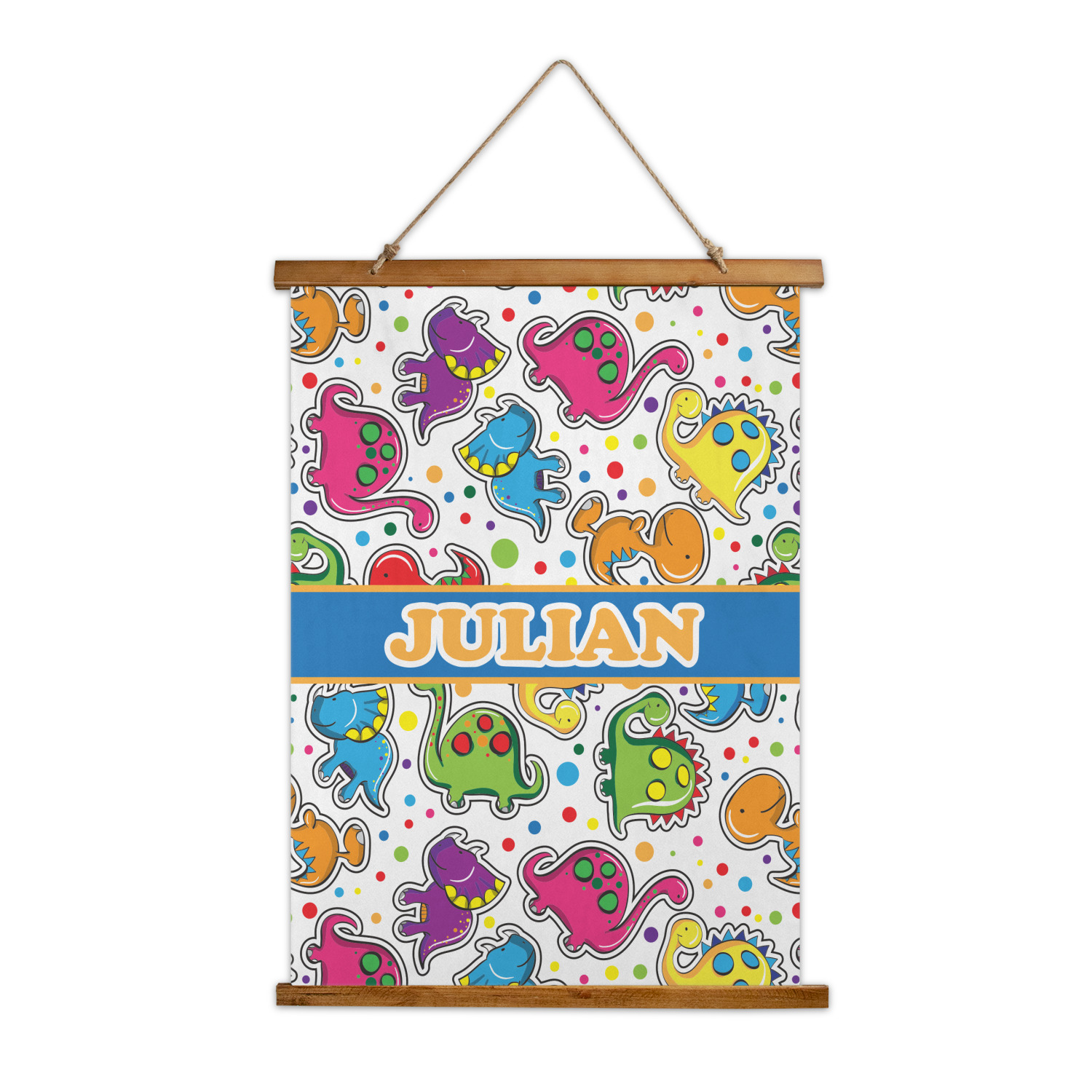 Made in two different orientations - portrait or landscape - both are 26" x 36". Your design is printed on a high quality polyester fabric with hemmed edges. The wood on the top and bottom of the tapestry is 1.25" tall and 0.25" thick and there are two pieces on top and bottom which sandwich the fabric.