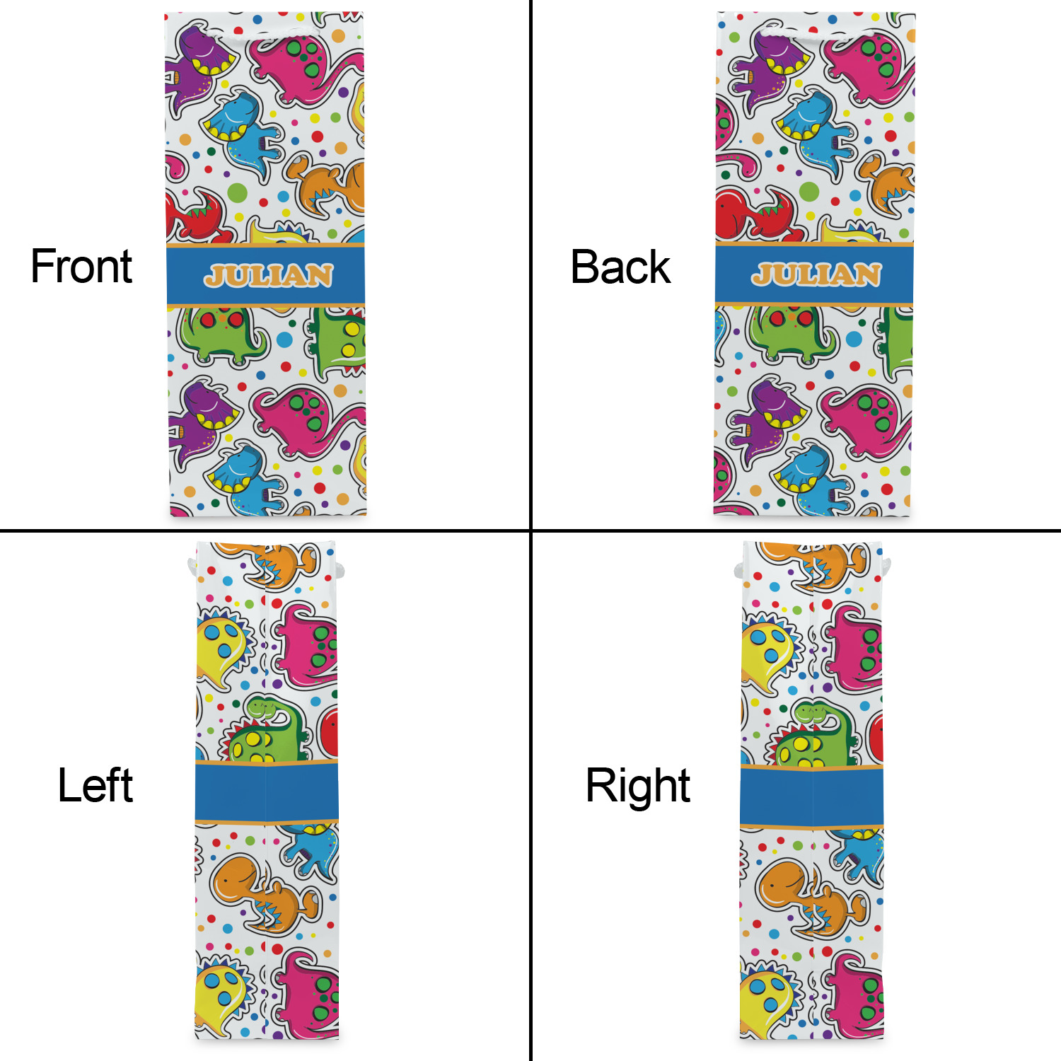 Colorful dinosaurs spring to life in this whimsical and comical versatile pattern. Set on a backdrop of multicolored polka dots these dinosaurs are sure to delight your little ones. Using bright colors of Blue, red, green, purple, yellow, and pink these dinosaurs are sure to stir up your little one's imagination in no time.