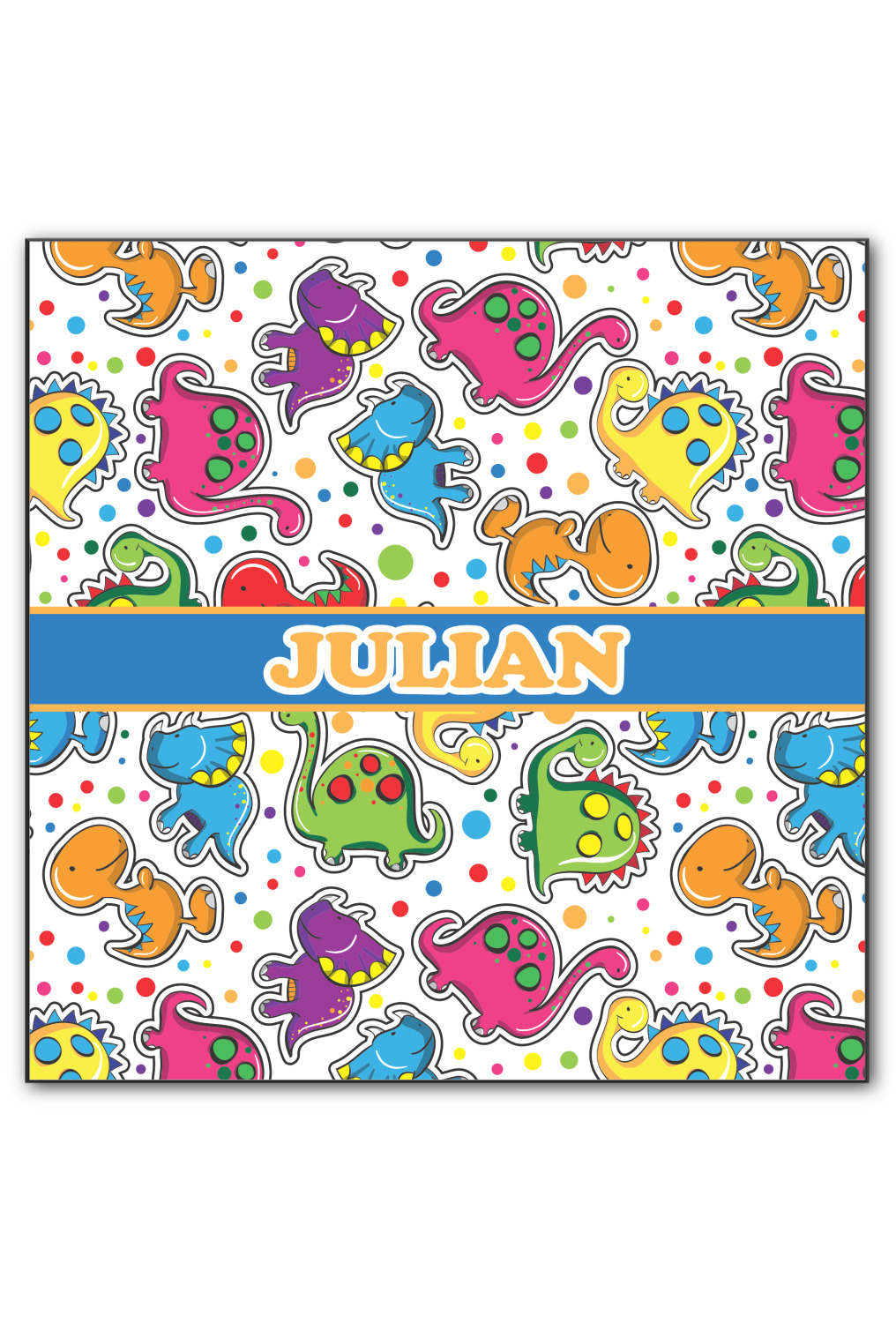 Colorful dinosaurs spring to life in this whimsical and comical versatile pattern. Set on a backdrop of multicolored polka dots these dinosaurs are sure to delight your little ones. Using bright colors of Blue, red, green, purple, yellow, and pink these dinosaurs are sure to stir up your little one's imagination in no time.