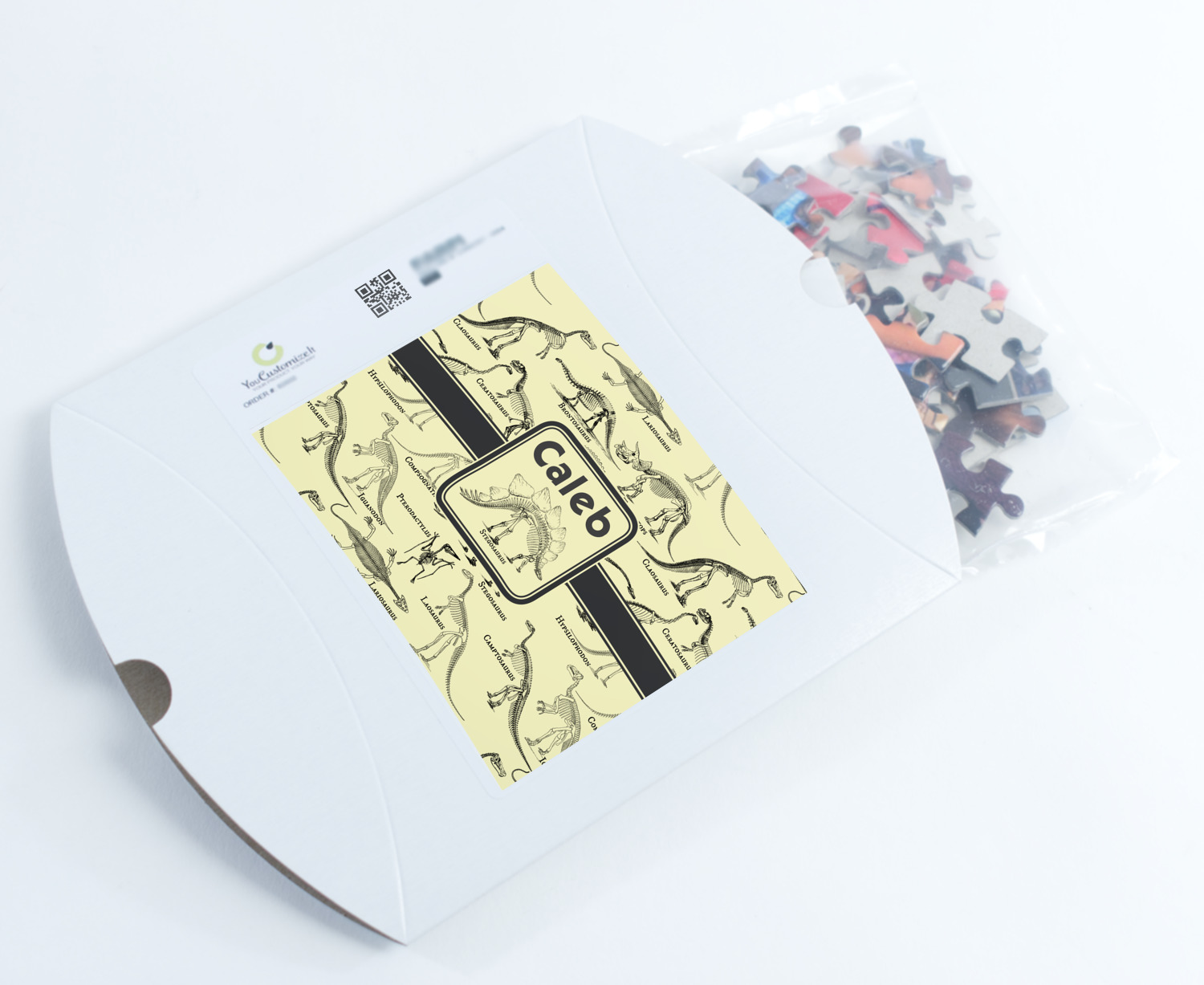 We print our puzzles on thick white chipboard in vibrant colors, then laminate the chipboard and die cut your puzzle. Your jigsaw puzzle is shipped to you in a box with the image of the puzzle on the box.