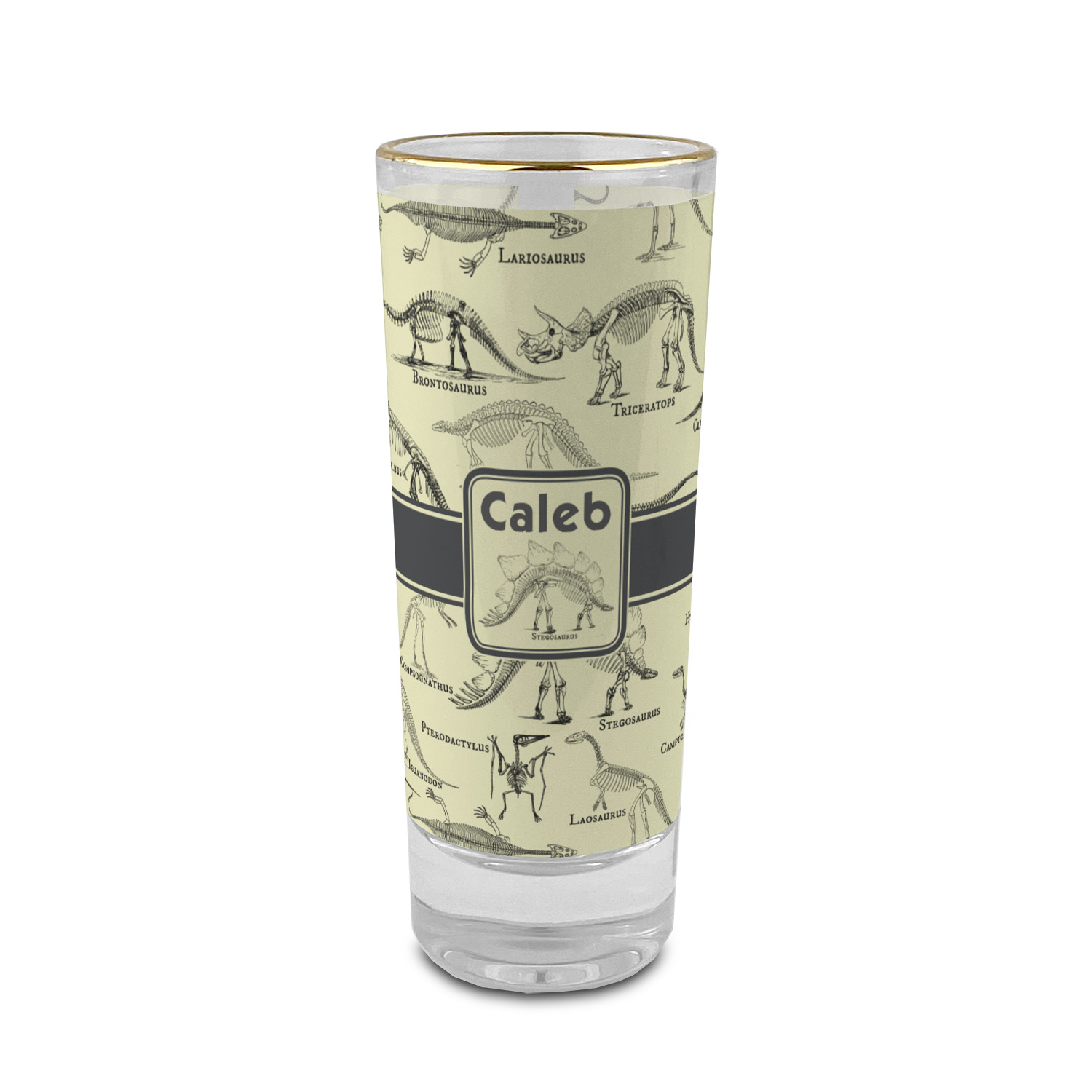 Stegosaurus Designs for 2 oz Shot Glasses - Glass with Gold Rim