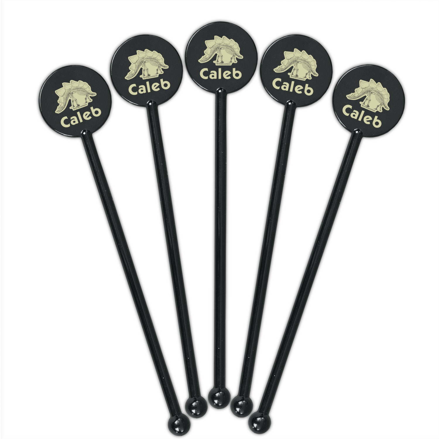 Stegosaurus Designs for 5.5" Round Plastic Stir Sticks - Black - Single-Sided