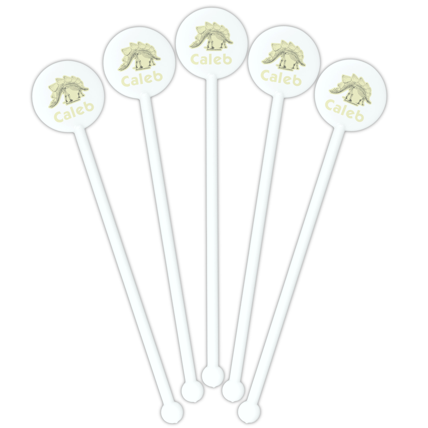 Stegosaurus Designs for 5.5" Round Plastic Stir Sticks - White - Single-Sided