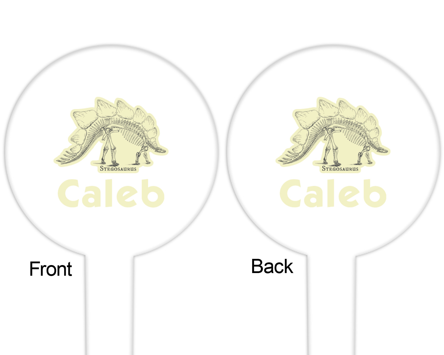 Stegosaurus Designs for 6" Round Plastic Food Picks - White - Double-Sided