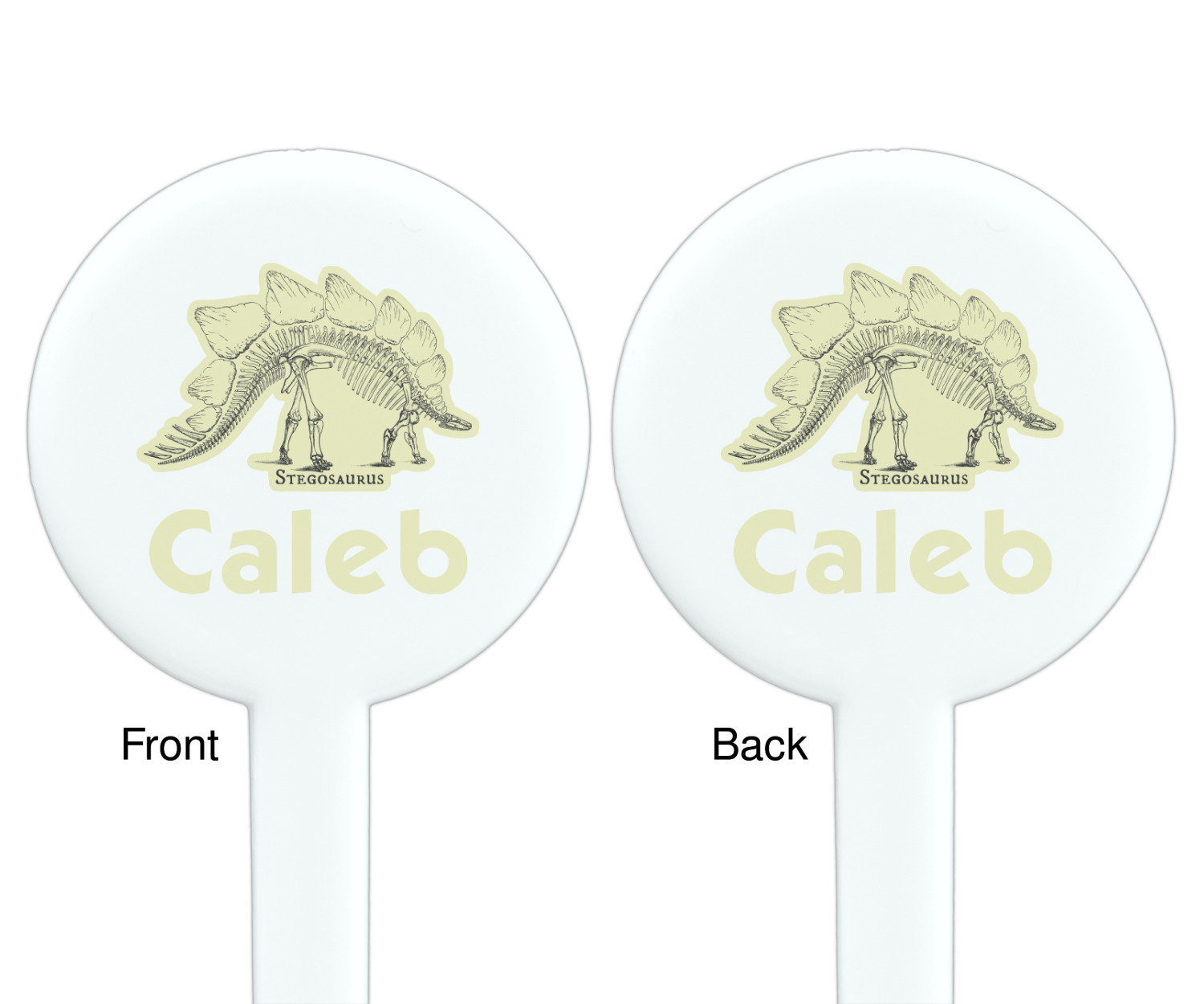 Stegosaurus Designs for 7" Round Plastic Stir Sticks - White - Double-Sided