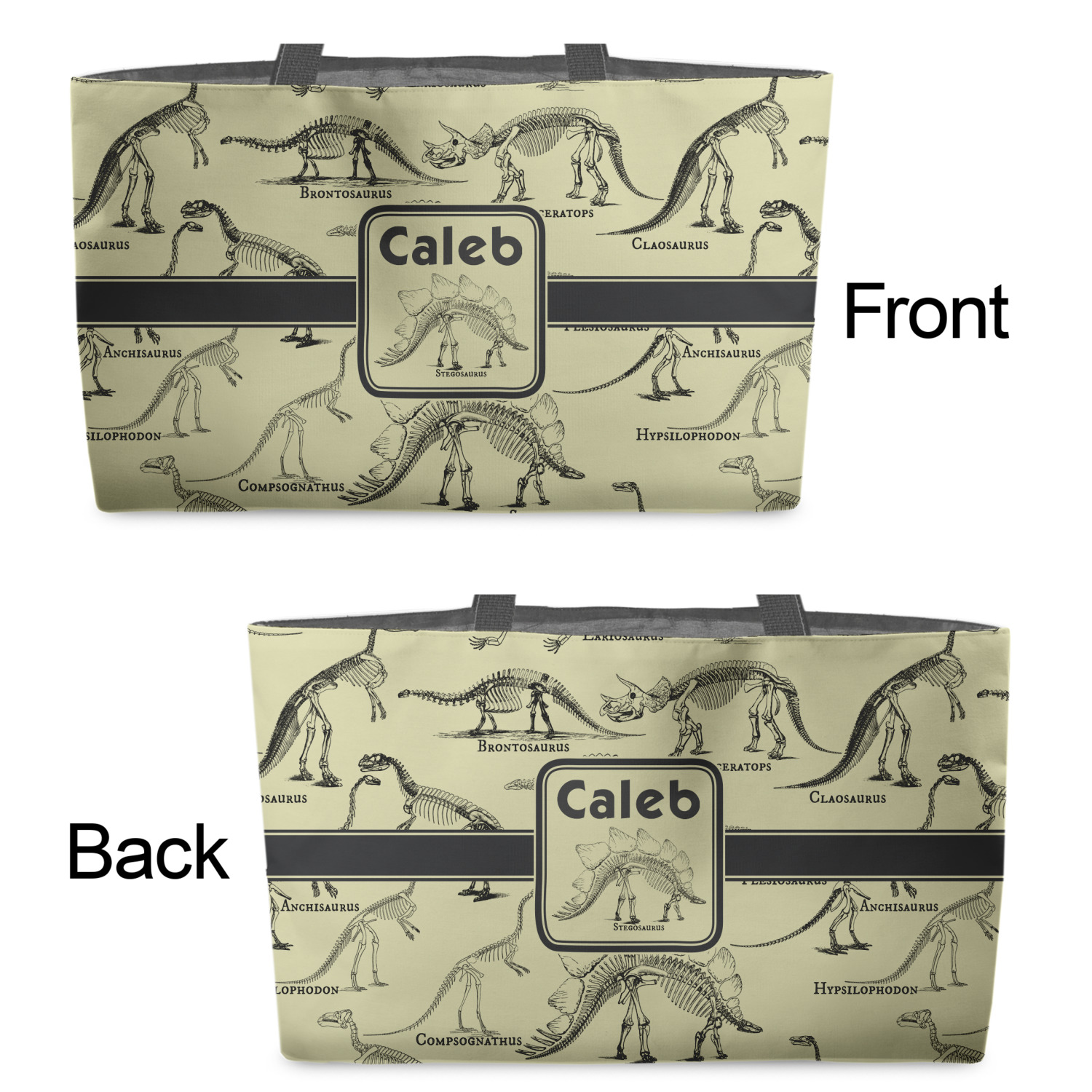 Stegosaurus Designs for Beach Totes Bags - w/ Black Handles