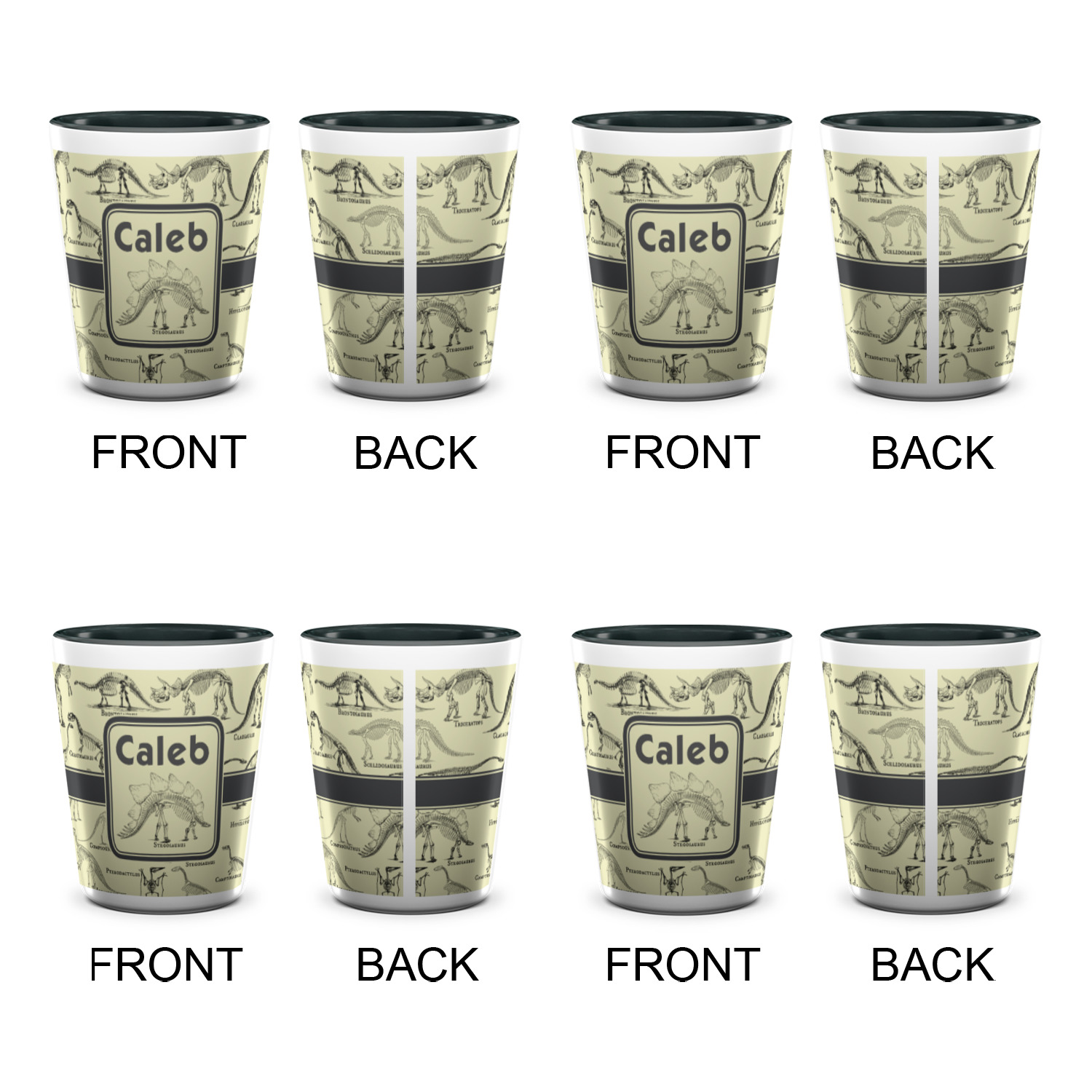 Velociraptor Designs for Ceramic Shot Glasses - 1.5 oz - Two Tone - Set of 4