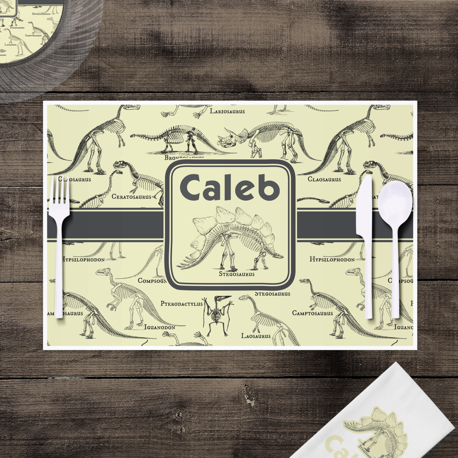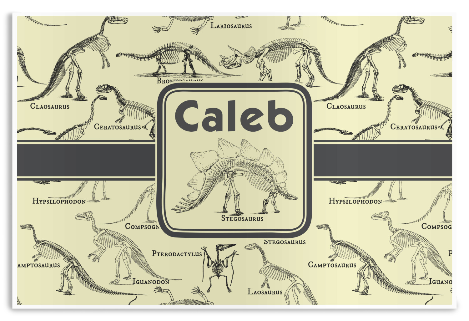 We chose to feature our design with a dark grey classic ribbon, a square label featuring the Stegosaurus Skeleton along with the child's name for personalization. All the Dinosaur Skeletons are available in our system - so you can your child's favorite dino and feature it.