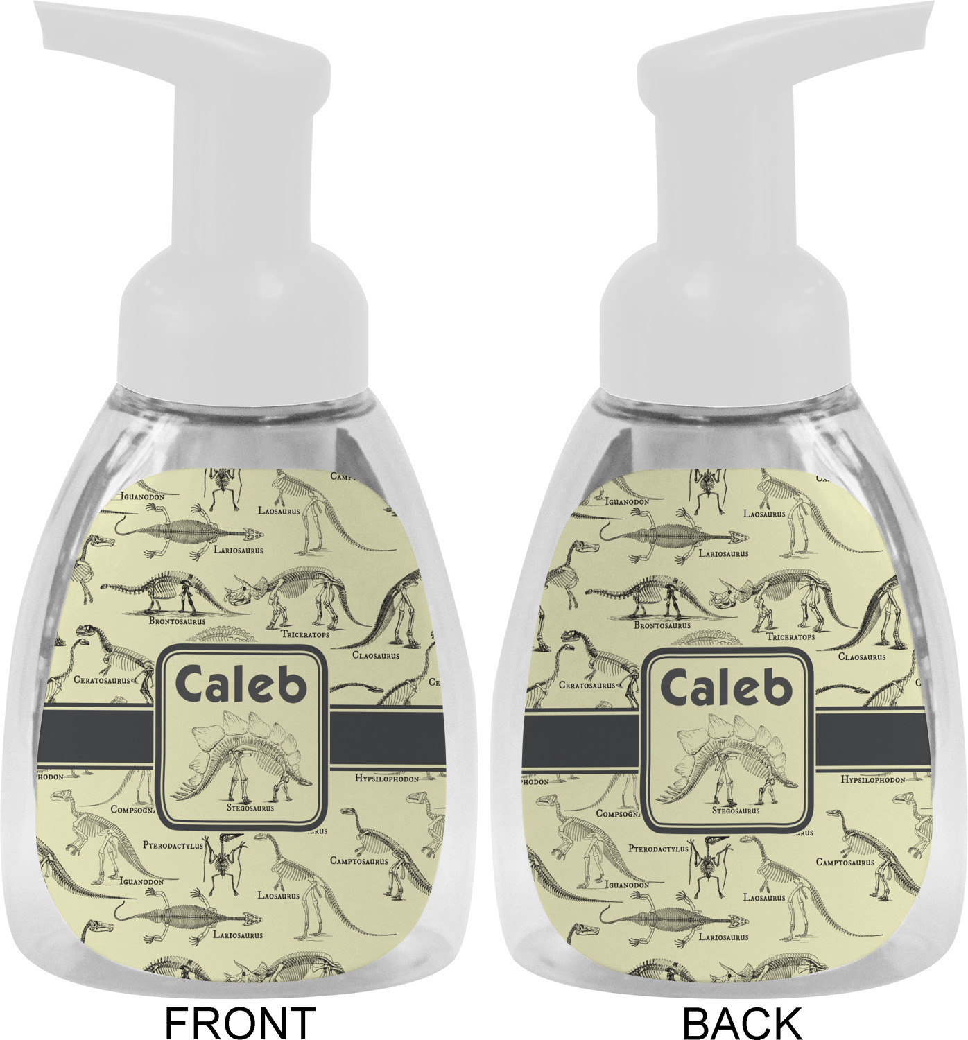This soap dispenser is made of a robust plastic and has a clear base. The included soap pump is available in black or white color. This dispenser is 6.5 inches tall, 3 inches wide, and 2 inches deep. We display your customized designs on the front and back sides of these foaming hand soap dispensers.