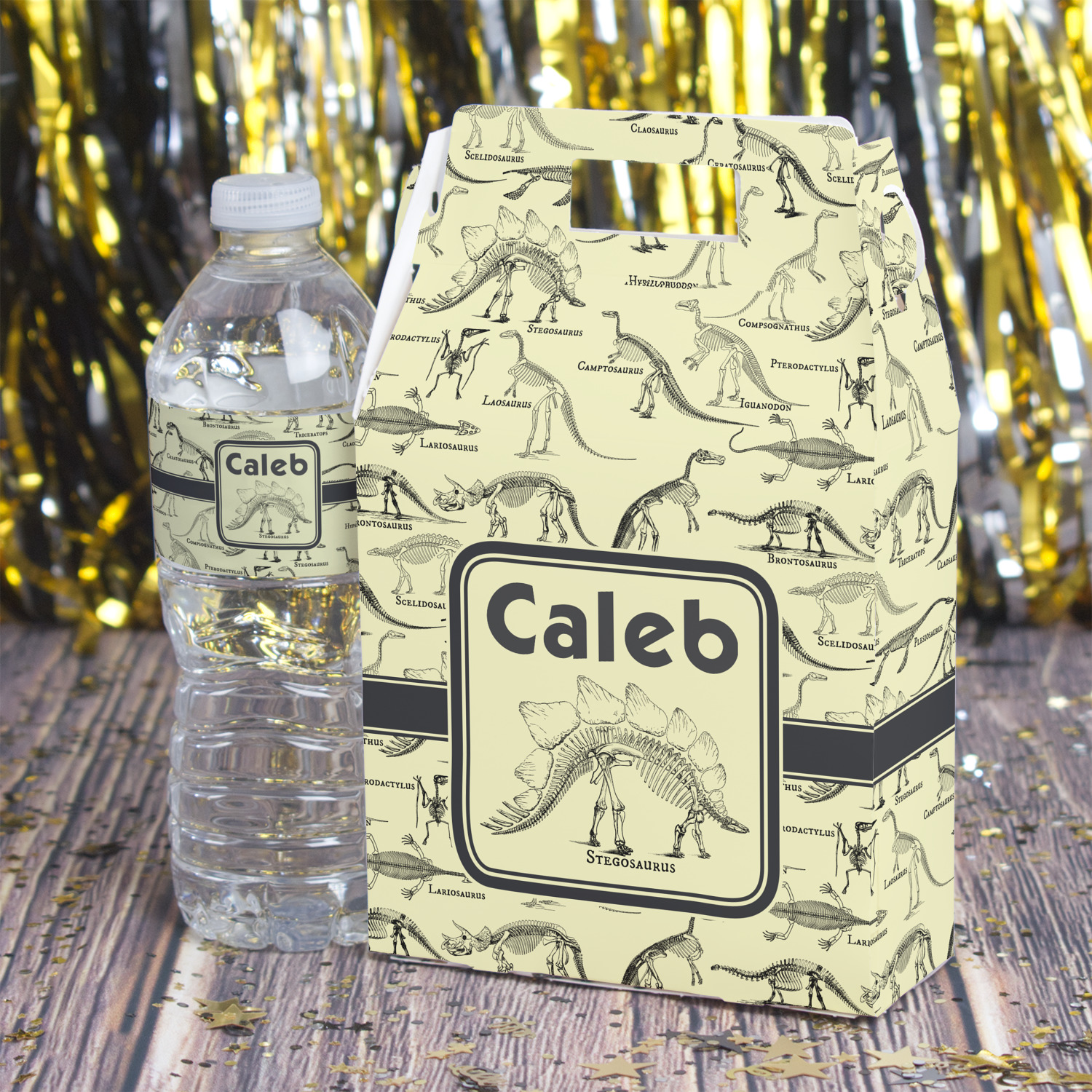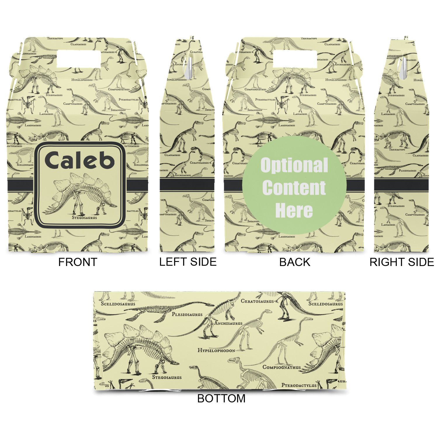 We chose to feature our design with a dark grey classic ribbon, a square label featuring the Stegosaurus Skeleton along with the child's name for personalization. All the Dinosaur Skeletons are available in our system - so you can your child's favorite dino and feature it.