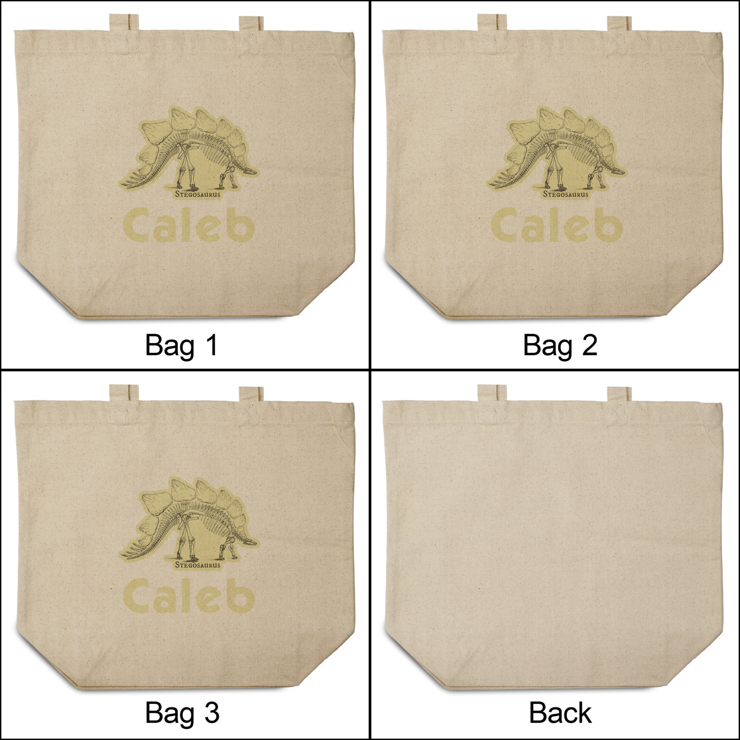 Stegosaurus Designs for Reusable Cotton Grocery Bags - Set of 3