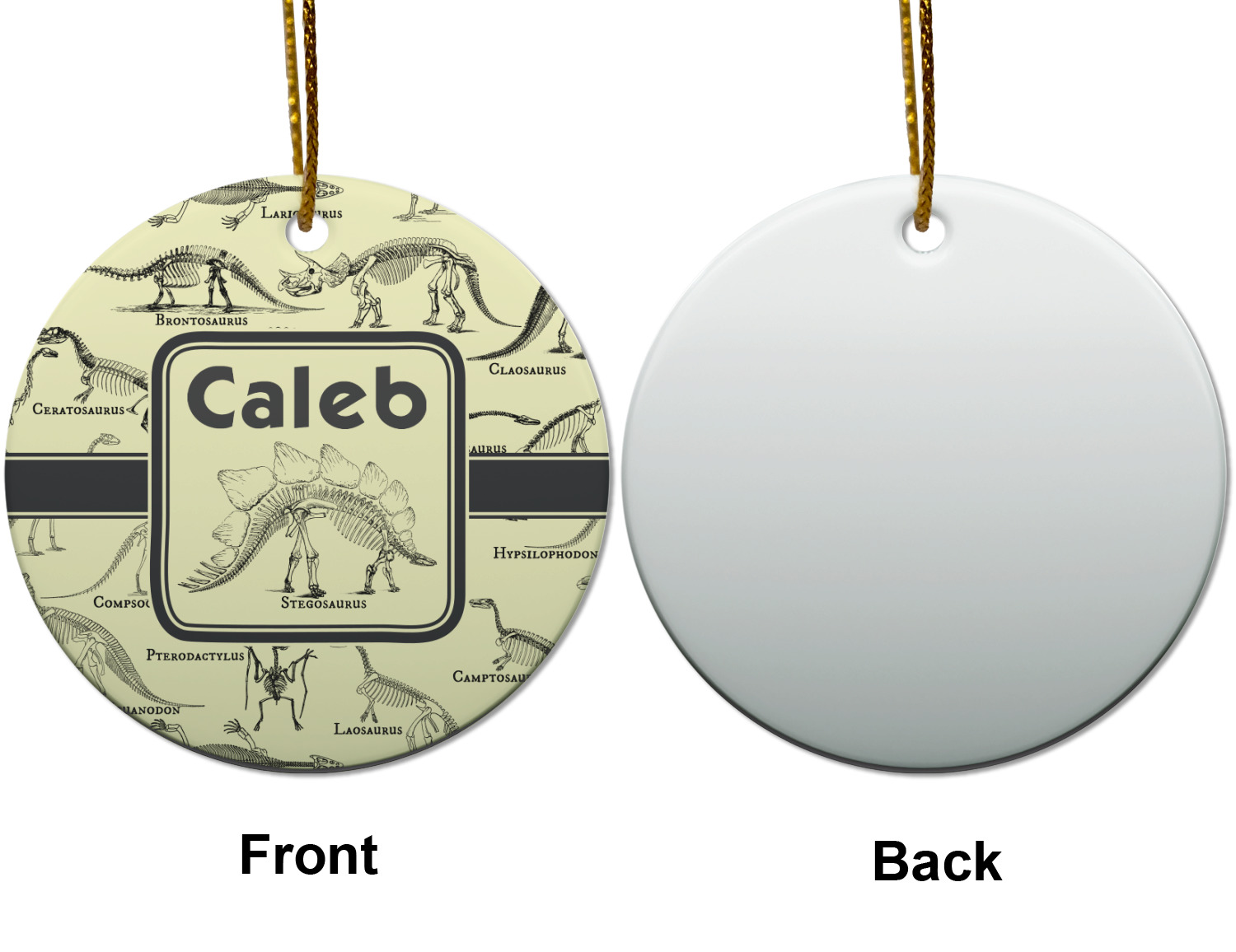 We chose to feature our design with a dark grey classic ribbon, a square label featuring the Stegosaurus Skeleton along with the child's name for personalization. All the Dinosaur Skeletons are available in our system - so you can your child's favorite dino and feature it.