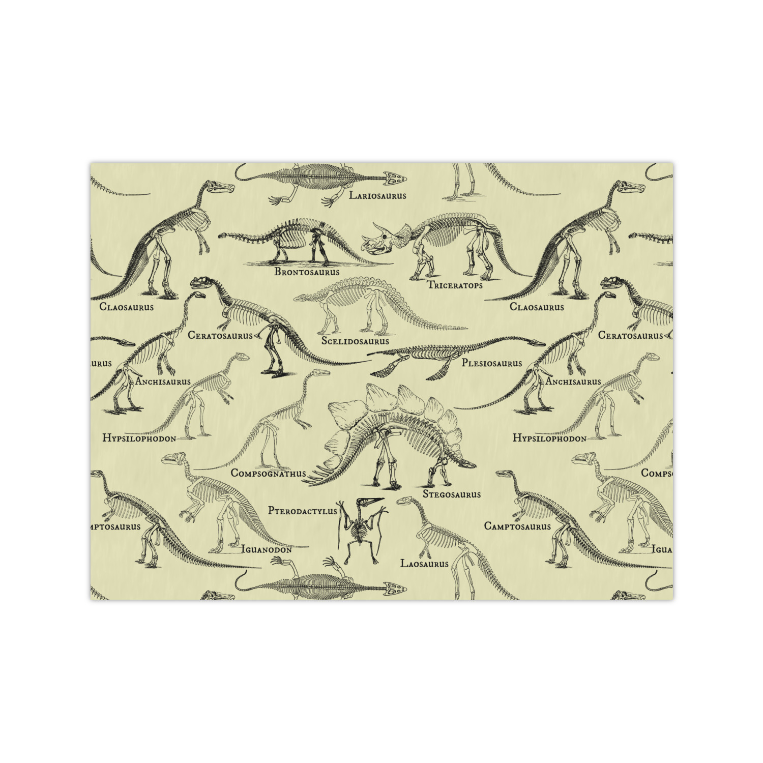 Kids love Dinosaurs and love our Dinosaur designs; and we have a request to create dinosaur bones / skeletons design - so here it is! We think it turned out to be awesome. Our Dinosaur Skeletons design features a number of dino skeletons on a light yellow background. Dino skeletons include Iguanodon, Laosurus, Camptosaurus, Lariosaurus, brontosaurus, triceratops, claosaurus, cerotosaurus and many others.