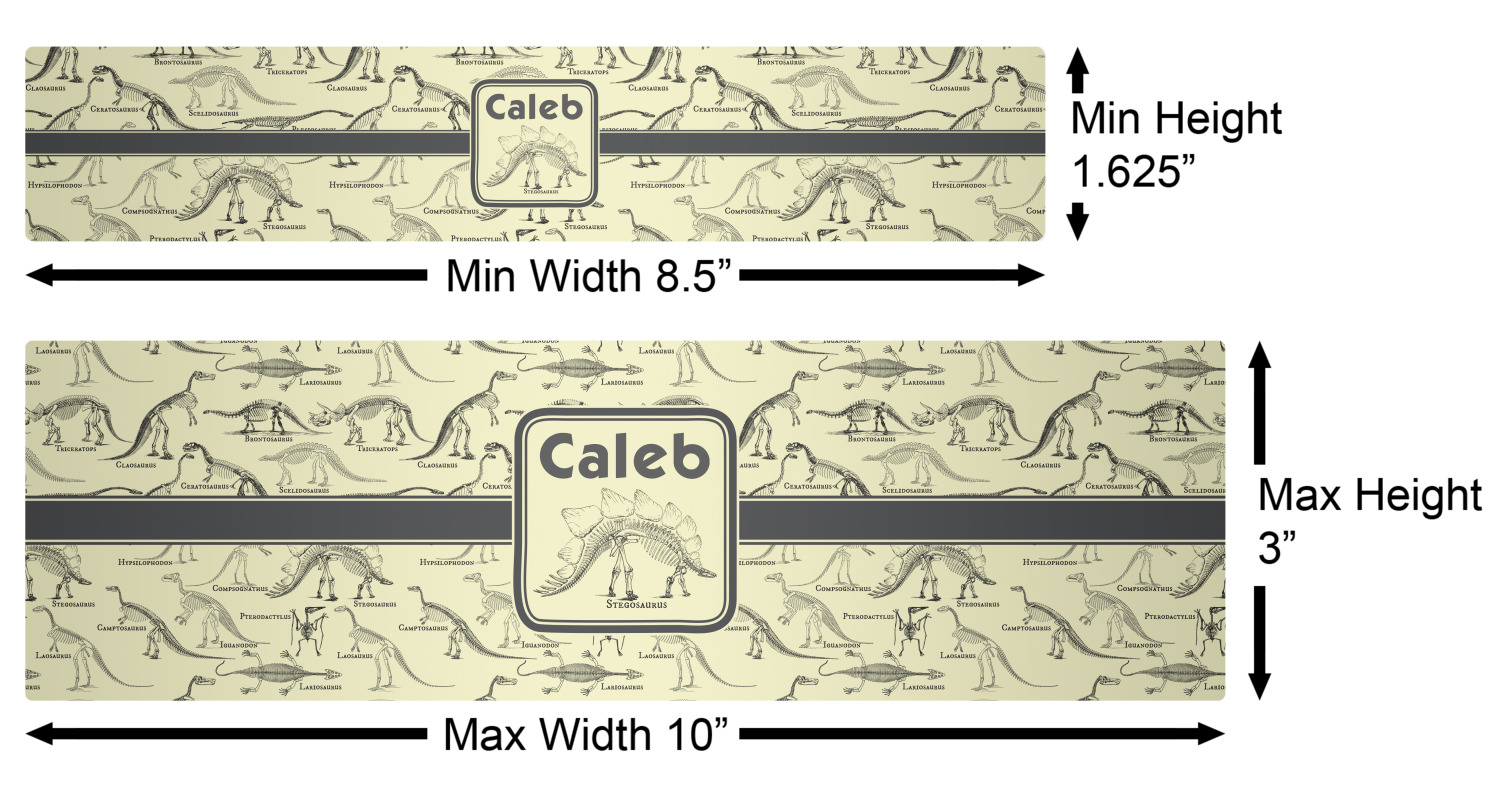 We chose to feature our design with a dark grey classic ribbon, a square label featuring the Stegosaurus Skeleton along with the child's name for personalization. All the Dinosaur Skeletons are available in our system - so you can your child's favorite dino and feature it.