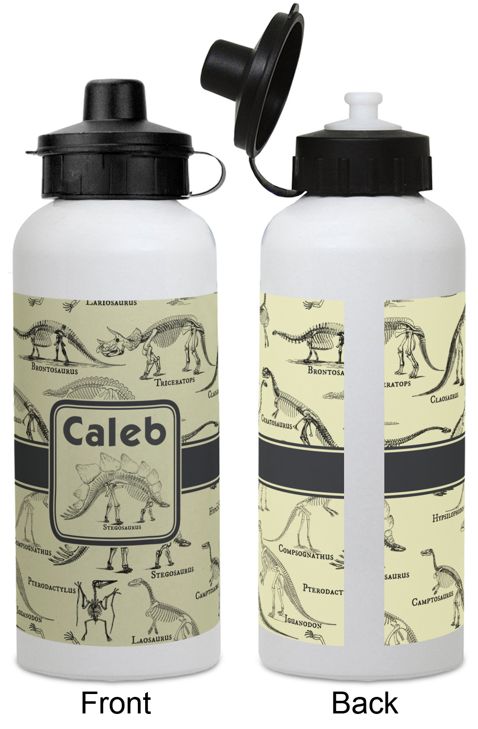 Stegosaurus Designs for Water Bottles - Aluminum - 20 oz - White