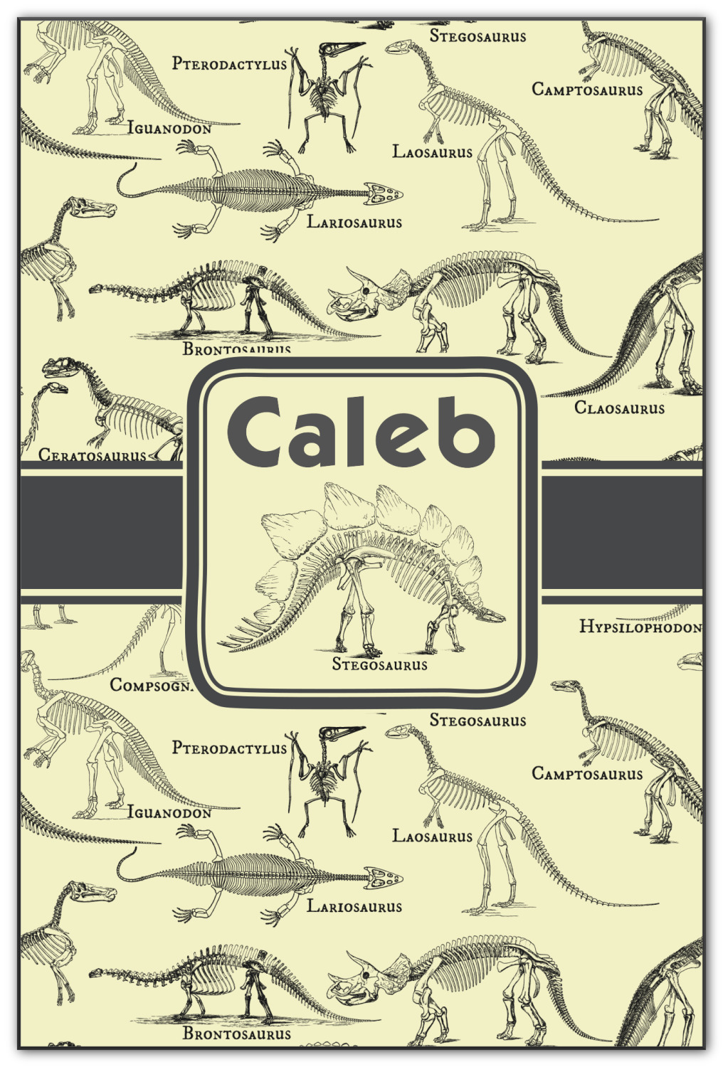 We chose to feature our design with a dark grey classic ribbon, a square label featuring the Stegosaurus Skeleton along with the child's name for personalization. All the Dinosaur Skeletons are available in our system - so you can your child's favorite dino and feature it.