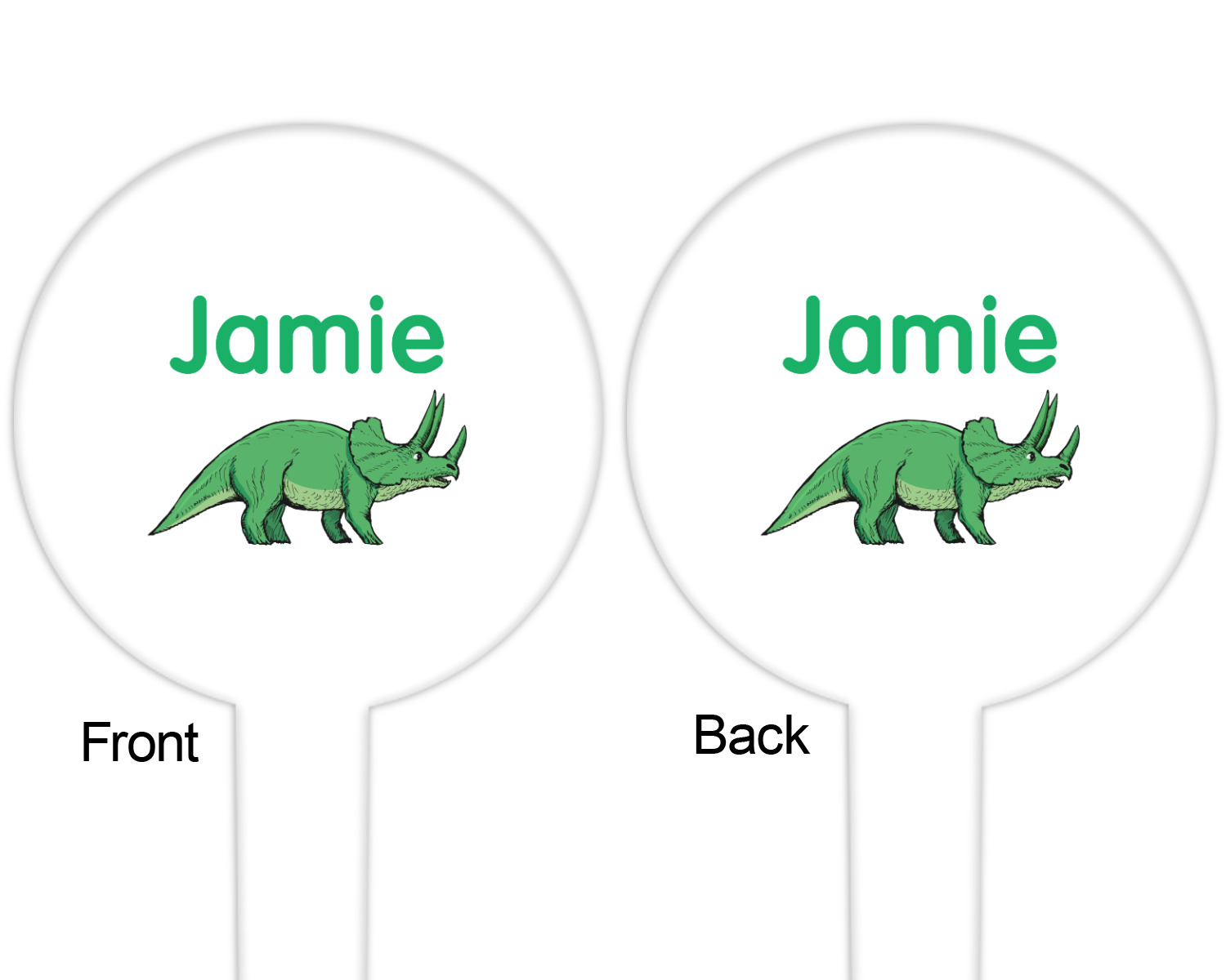 Triceratops Designs for 6" Round Plastic Food Picks - White - Double-Sided