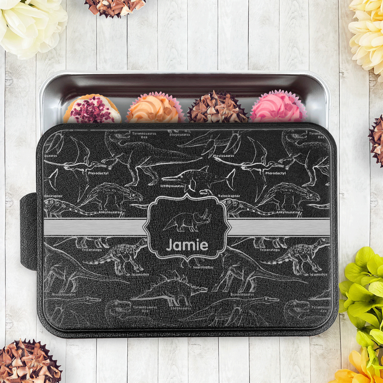 With the lid laser etched with the design of your choice these get the fully customized touch unique to you. The possibilities are endless when you go to design your own cake pan lid. With our design library you can make the design of your dreams come true.