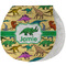 This is made up of 12 different hand drawn dinosaurs (Triceratops, Tyrannosaurus Rex, Velociraptor, Brachiosaurus, Ankylosaurus, Pterodactyl, Stegosaurus, Saurolophus, Plesiosaurus, Allosaurus, Iguanodon and Ichthyosaurus) and each dinosaur has it's type written next to it. We chose a light yellow background with a green ribbon and decorative label; and we chose to use a triceratops and a name inside the label.