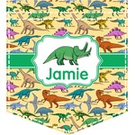 This is made up of 12 different hand drawn dinosaurs (Triceratops, Tyrannosaurus Rex, Velociraptor, Brachiosaurus, Ankylosaurus, Pterodactyl, Stegosaurus, Saurolophus, Plesiosaurus, Allosaurus, Iguanodon and Ichthyosaurus) and each dinosaur has it's type written next to it. We chose a light yellow background with a green ribbon and decorative label; and we chose to use a triceratops and a name inside the label.