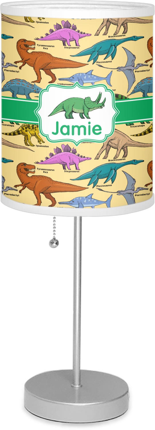 This is made up of 12 different hand drawn dinosaurs (Triceratops, Tyrannosaurus Rex, Velociraptor, Brachiosaurus, Ankylosaurus, Pterodactyl, Stegosaurus, Saurolophus, Plesiosaurus, Allosaurus, Iguanodon and Ichthyosaurus) and each dinosaur has it's type written next to it. We chose a light yellow background with a green ribbon and decorative label; and we chose to use a triceratops and a name inside the label.