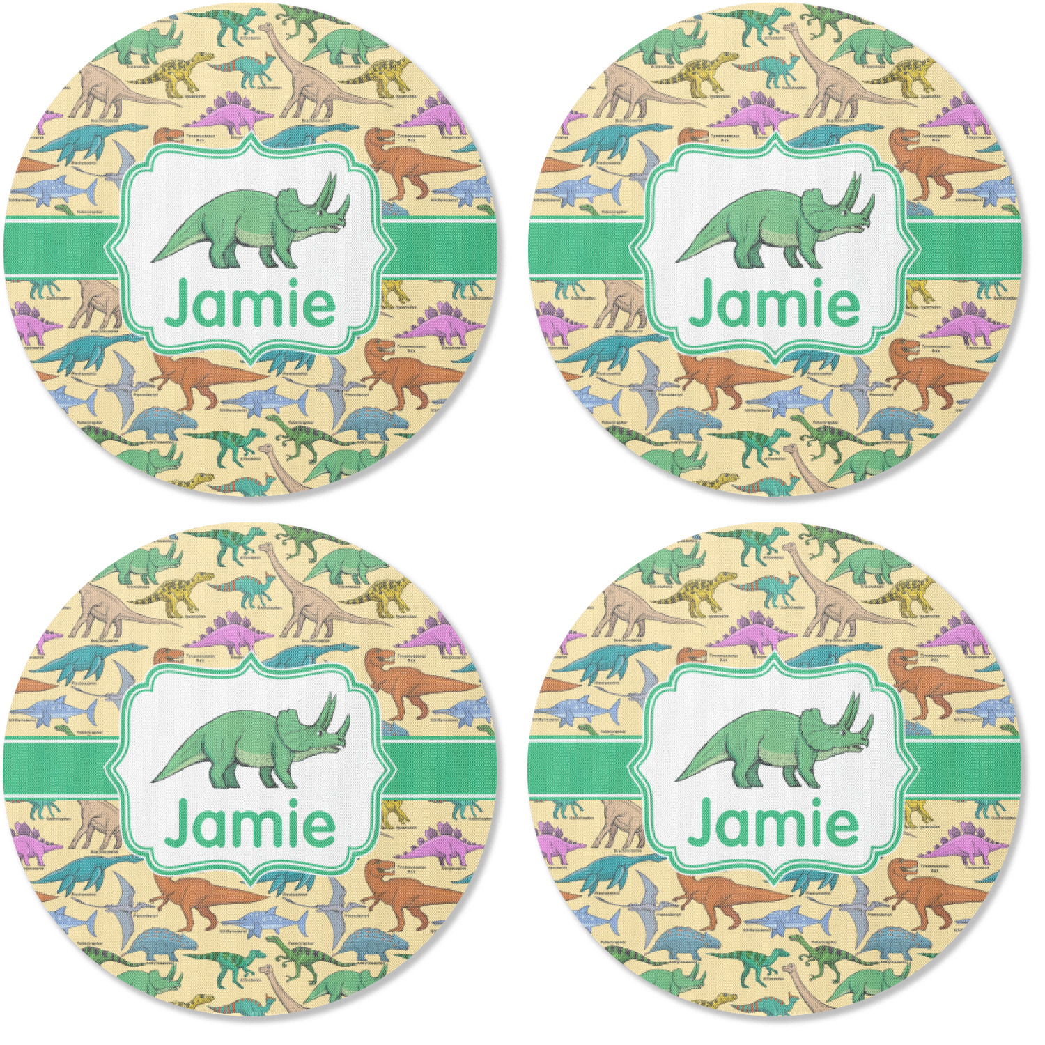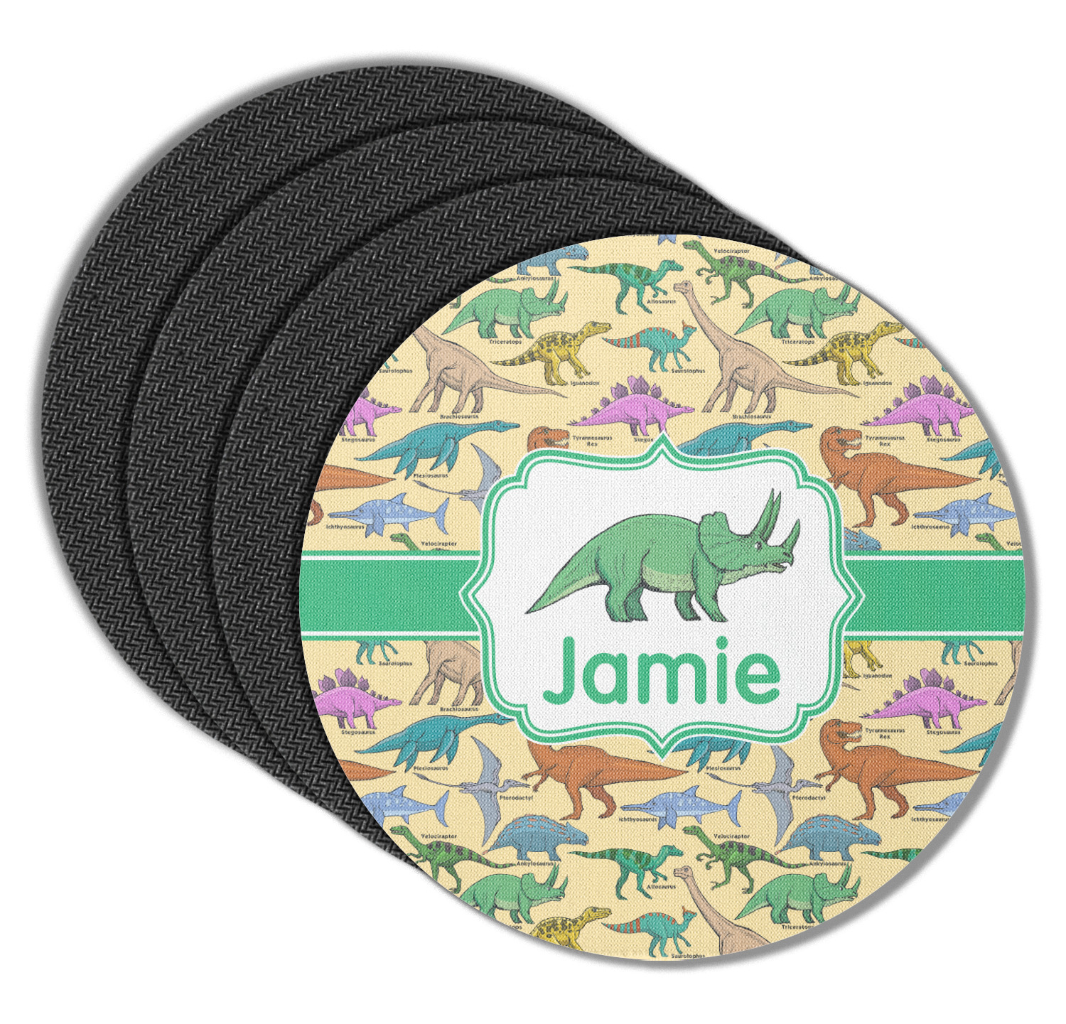 Triceratops Designs for Round Rubber Backed Coasters - Set of 4