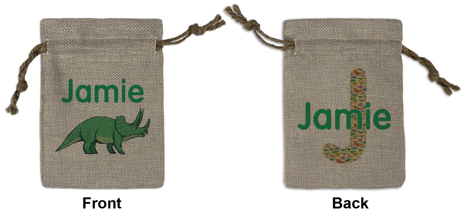 Triceratops Designs for Burlap Gift Bags - Small - Double-Sided