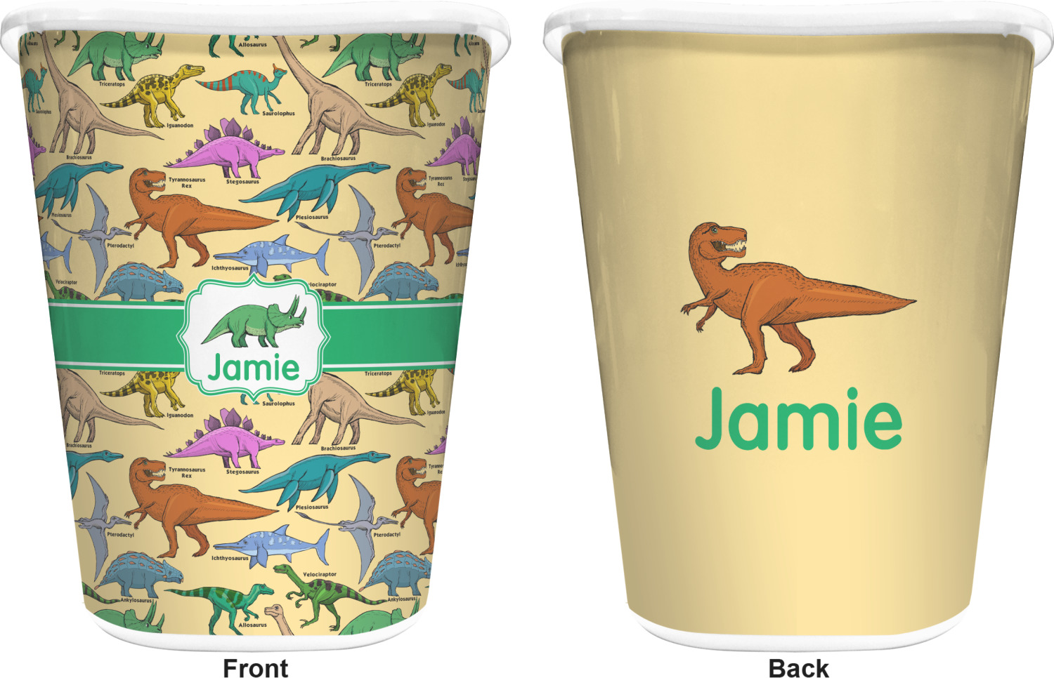 Stegosaurus Designs for Waste Baskets - Double-Sided - White