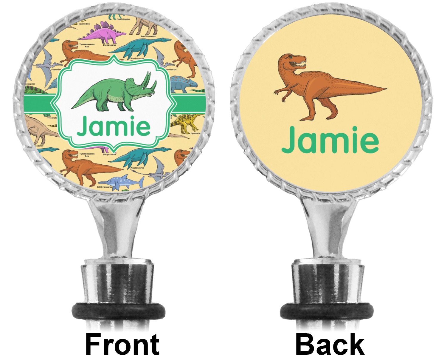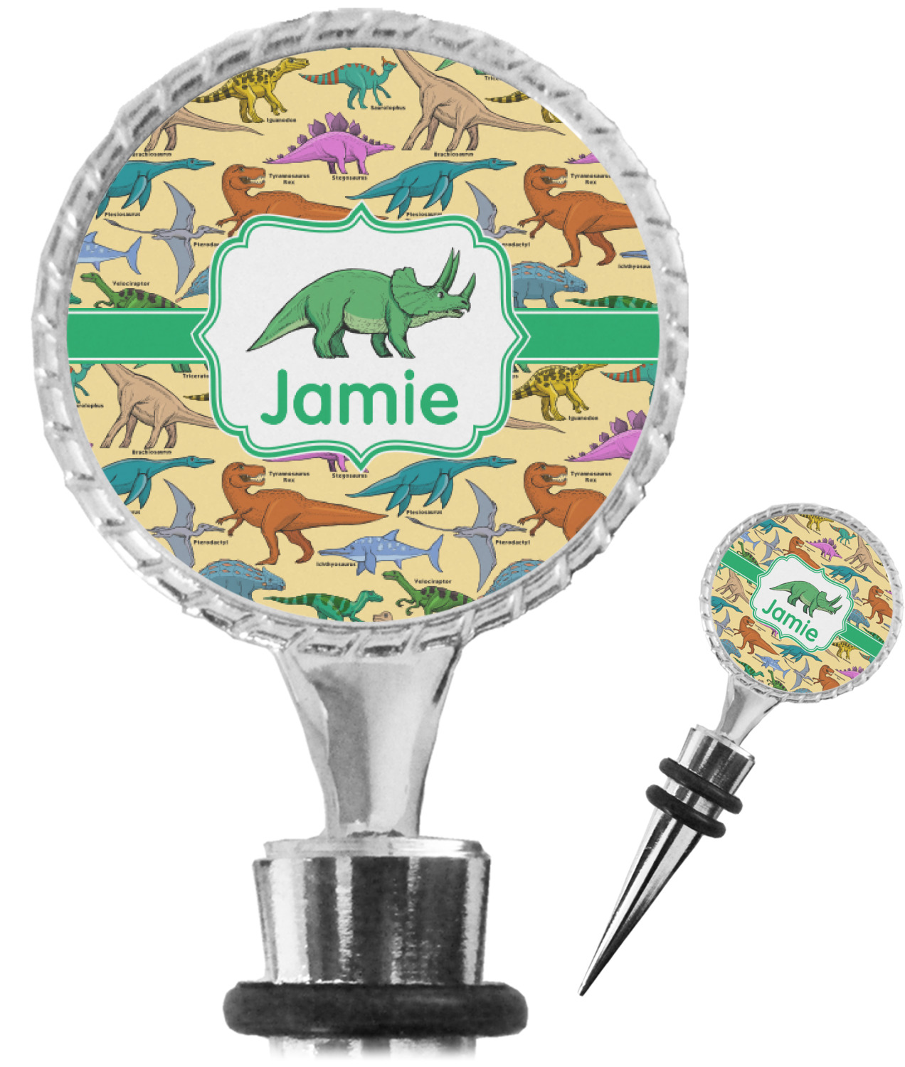 The top part of your bottle stopper is comprised of a zinc ring that displays your customization(s) in its middle, on both sides. The ring is heavy duty, with a bright chrome finish. The body of the wine stoppers have two silicone rings to provide an airtight seal. These wine bottle stoppers measure at 1.625" L x 0.8125" W x 4.625" H; your custom wine stopper is meant to fit into most standard-sized wine bottles.