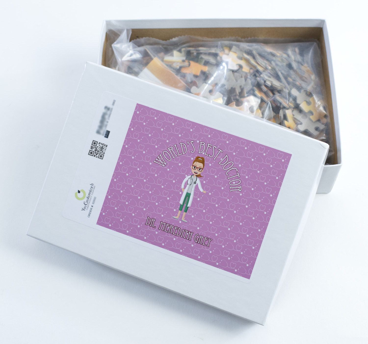 You can also upload your logo or art that you or your kids drew. To create more challenging jigsaw puzzles, you can create a pattern from with your logo or artwork. You can also add other elements such as text or personalization.