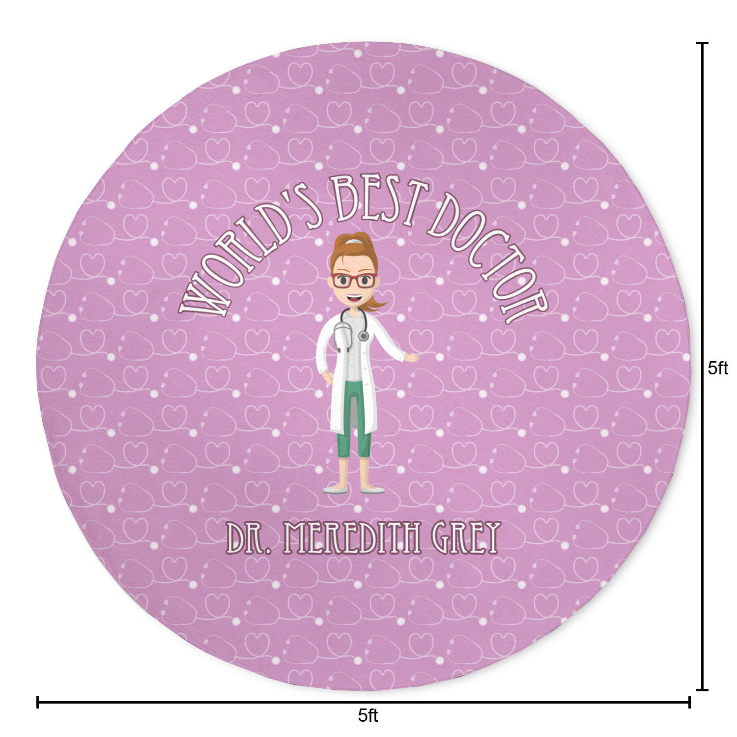The design features an avatar doctor that is wearing a labcoat. You can easily change her hair color and skin tone. You can even swap her out for a male doctor! The background has a subtle pattern made out of stethescopes and is a fun purple. You personalization goes on top and below the avatar.