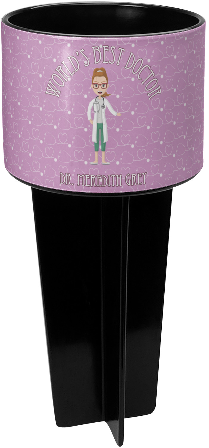 This cup holder has a large stake at its bottom that anchors it to the sand or ground below, while the cup holder rests above the stake. The entire drink holder is made of durable plastic and displays your customization around the cup holder portion. We sell these personalized beach spikers in two different colors: black and white.