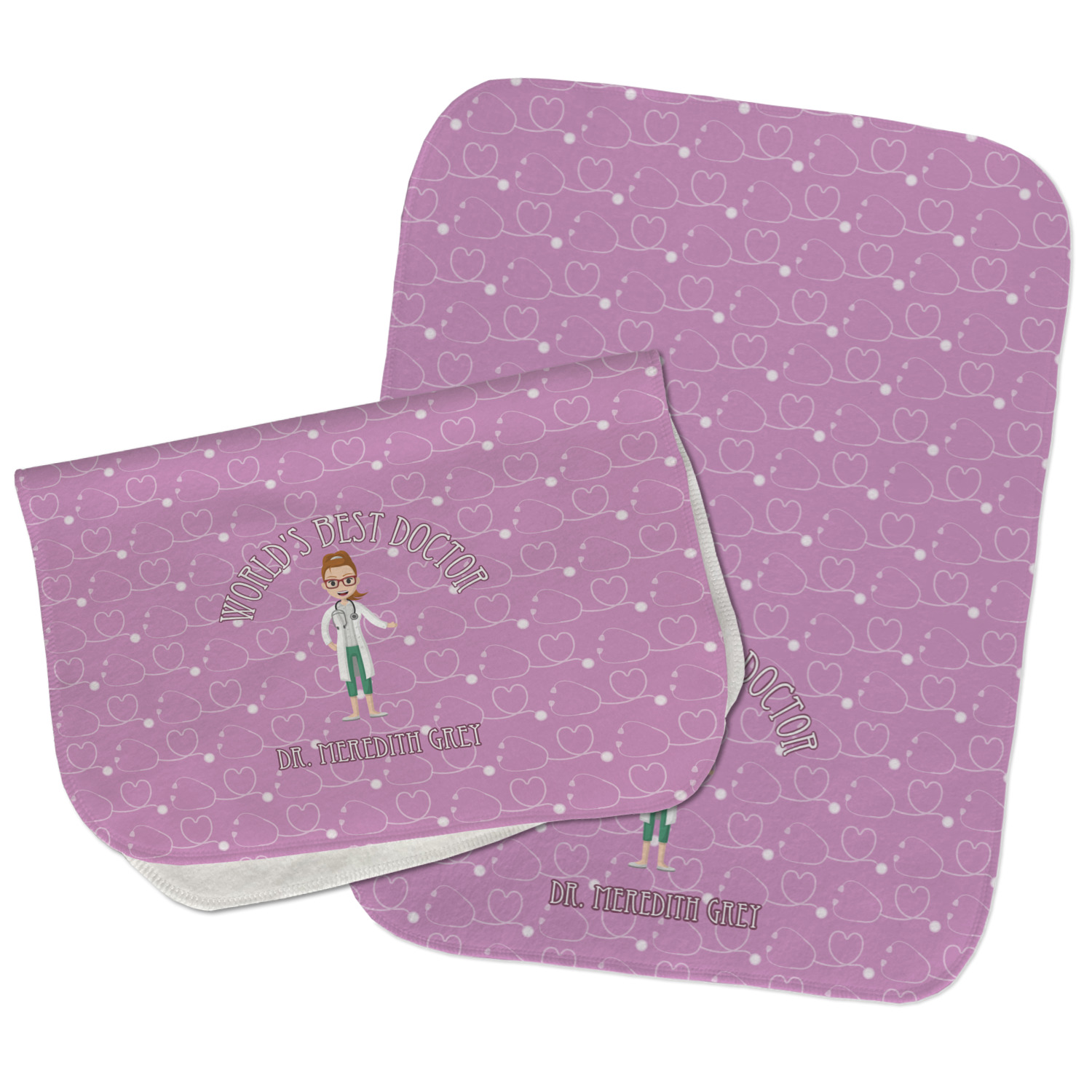 Choose your baby burp cloth from our two styles - Fleece (rectangular) or Microfiber Velour (peanut shape). The lightweight and absorbent design makes each burp cloth multipurpose; use them as a burp pad, a lap pad, a changing table, or a spare cloth to clean up any baby mess. Your customization is displayed across the front with baby-safe ink to ensure extra comfort with a white backing.