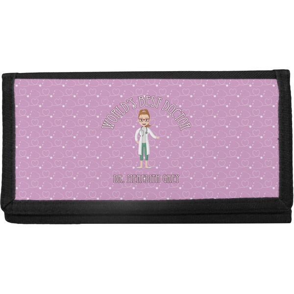 The checkbook cover is made of a durable canvas and the front flap is decorated with a vibrant design of your choosing. With 4 slots for credit cards or IDs, and 2 compartments for your checkbook register, cash, receipts, business cards, and more; this checkbook cover could easily double as a wallet.