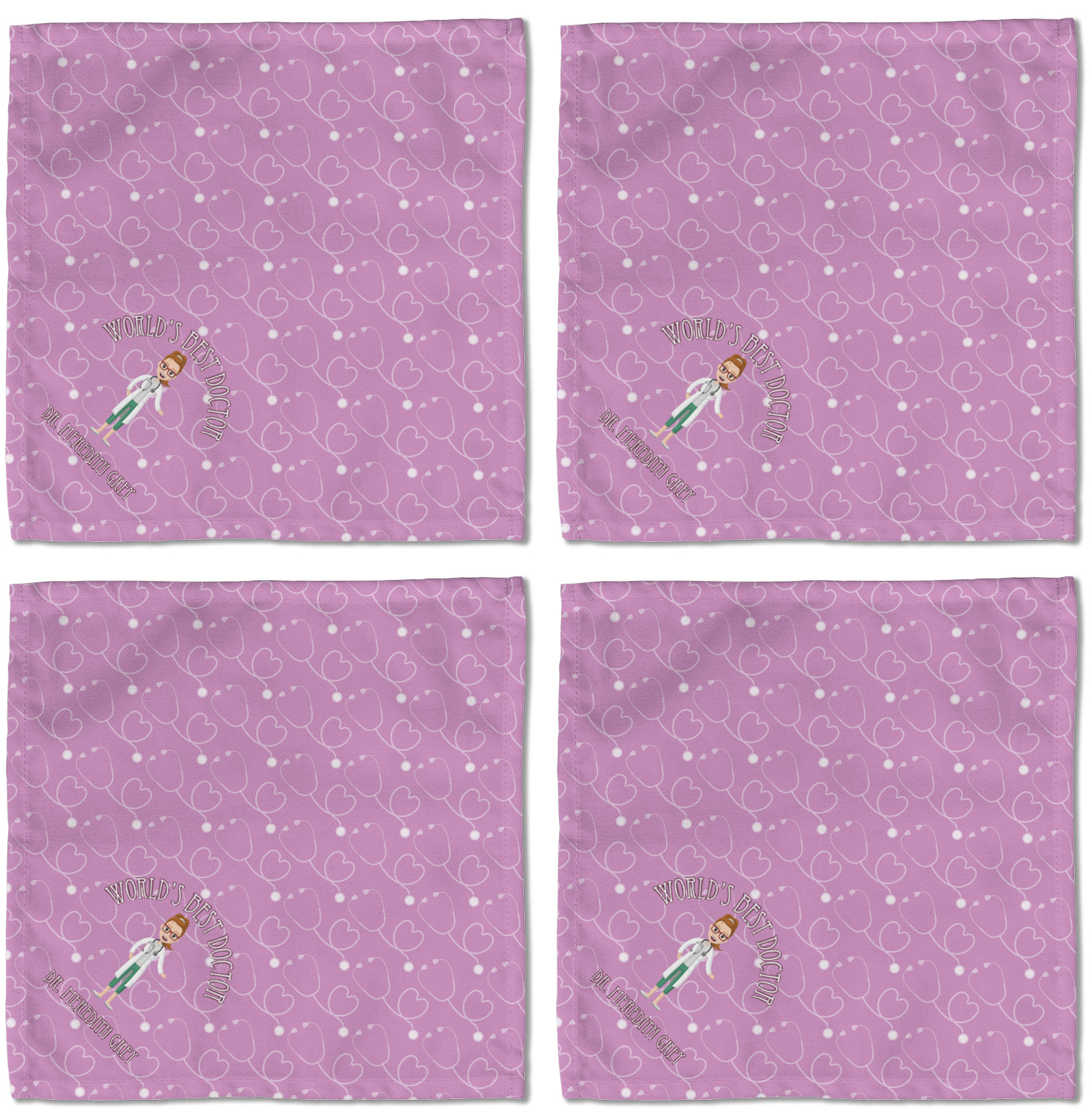 Each customizable cloth napkin is a polyester material guaranteed for long-term use. Since our napkins are cloth, it serves as a great reusable and eco-friendly dining decor. We sell personalized napkins individually or as a set of 4! Print your own unique design on all four napkins, or create four individual designs for each napkin! We offer two different napkin sizes - Cocktail napkins (approx. 10 x 10) and Dinner napkins (approx. 20 x 20). We print your design on one side, perfect for displaying your custom designed lunch napkins in any fold or table setting!