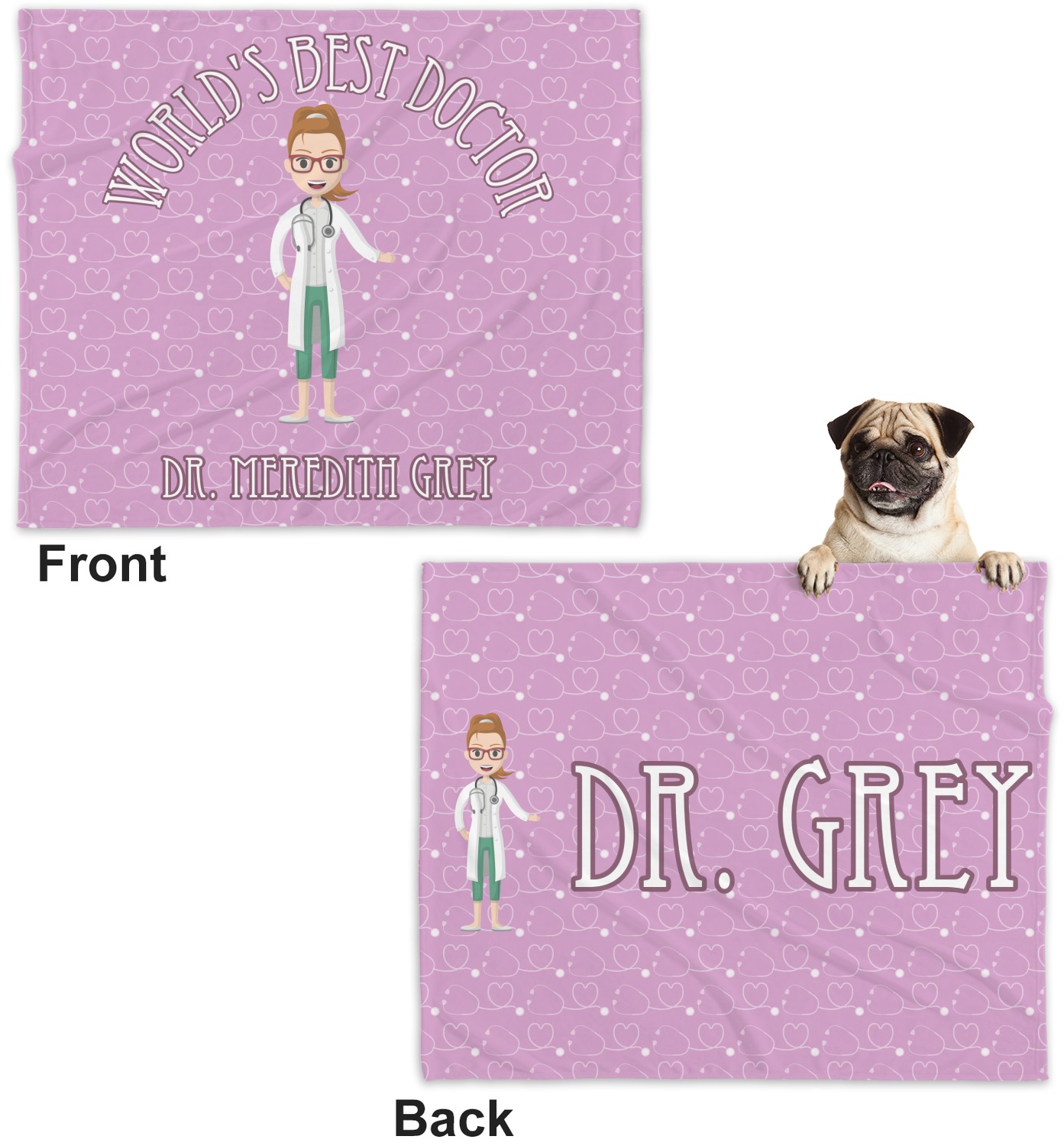 These dog blankets are crafted from a gentle, soft-to-the-touch, minky material. We print your customizations, either matching or differing, on both the top and underside of the blanket. These personalized dog blankets are available in two sizes: regular and large. Our regular size, at 40" x 30", accommodates small and some medium size dogs. At 60" x 50", our large dog blanket is a better fit for bigger breeds. Though specialized for dogs, these blankets still make a thoughtful gift for your favorite feline, or any other pet in mind!