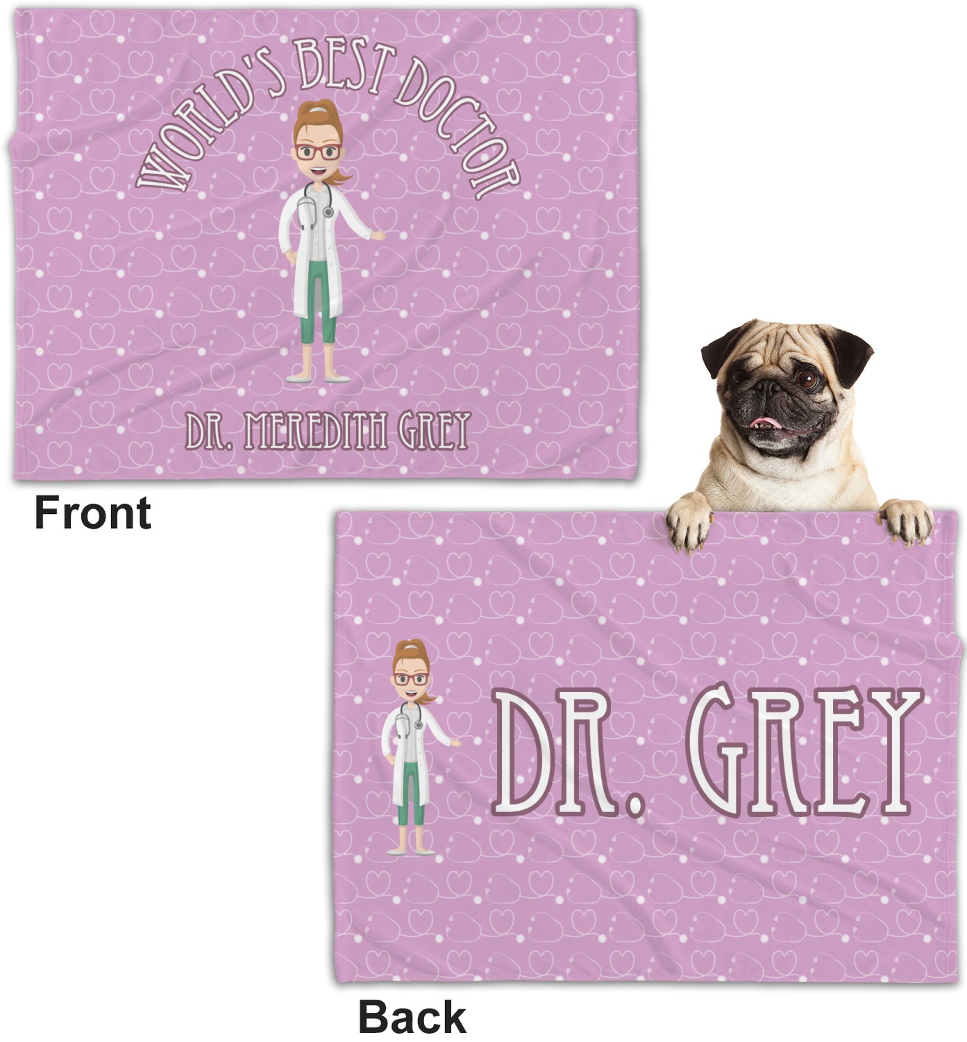 These dog blankets are crafted from a gentle, soft-to-the-touch, minky material. We print your customizations, either matching or differing, on both the top and underside of the blanket. These personalized dog blankets are available in two sizes: regular and large. Our regular size, at 40" x 30", accommodates small and some medium size dogs. At 60" x 50", our large dog blanket is a better fit for bigger breeds. Though specialized for dogs, these blankets still make a thoughtful gift for your favorite feline, or any other pet in mind!