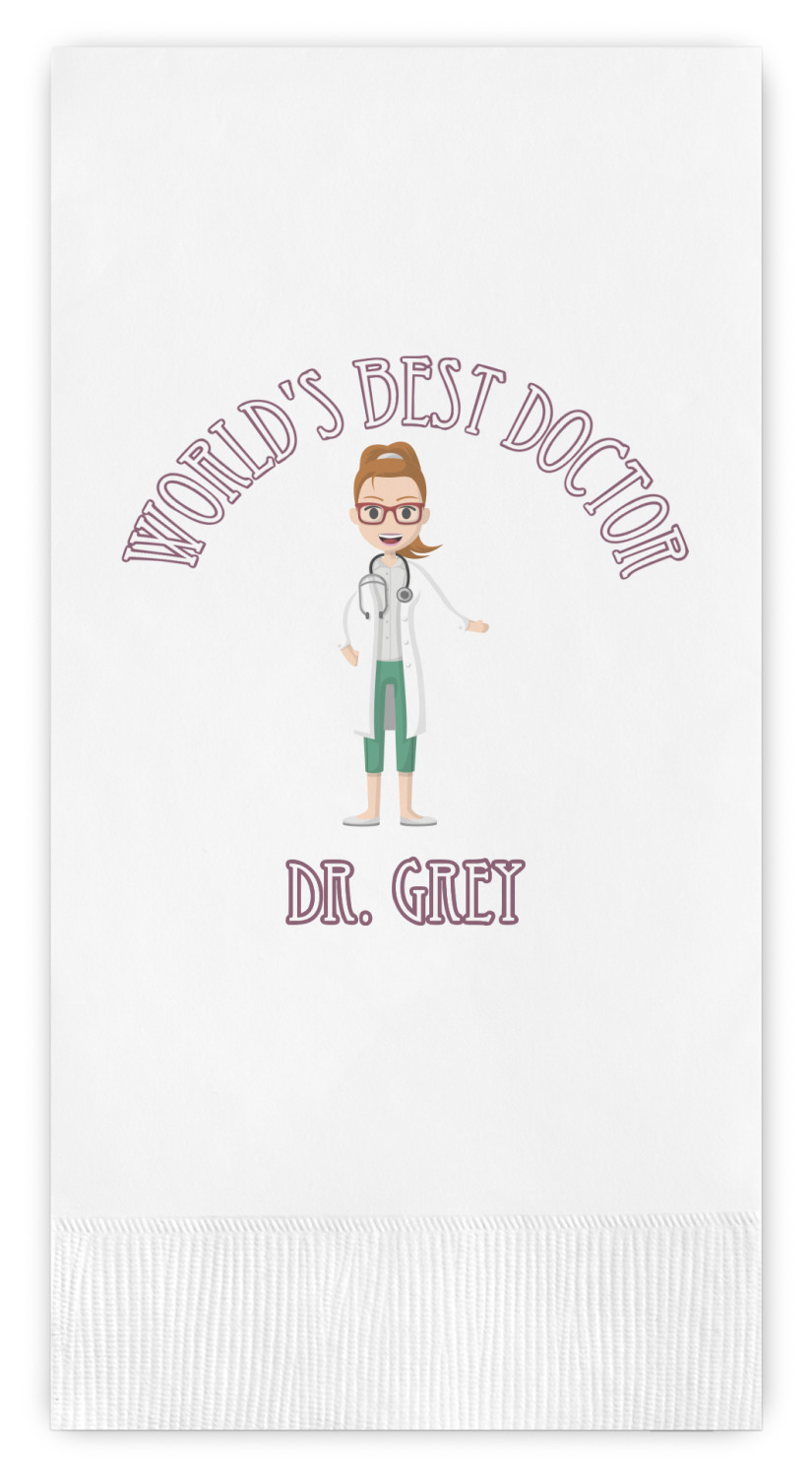 The design features an avatar doctor that is wearing a labcoat. You can easily change her hair color and skin tone. You can even swap her out for a male doctor! The background has a subtle pattern made out of stethescopes and is a fun purple. You personalization goes on top and below the avatar.
