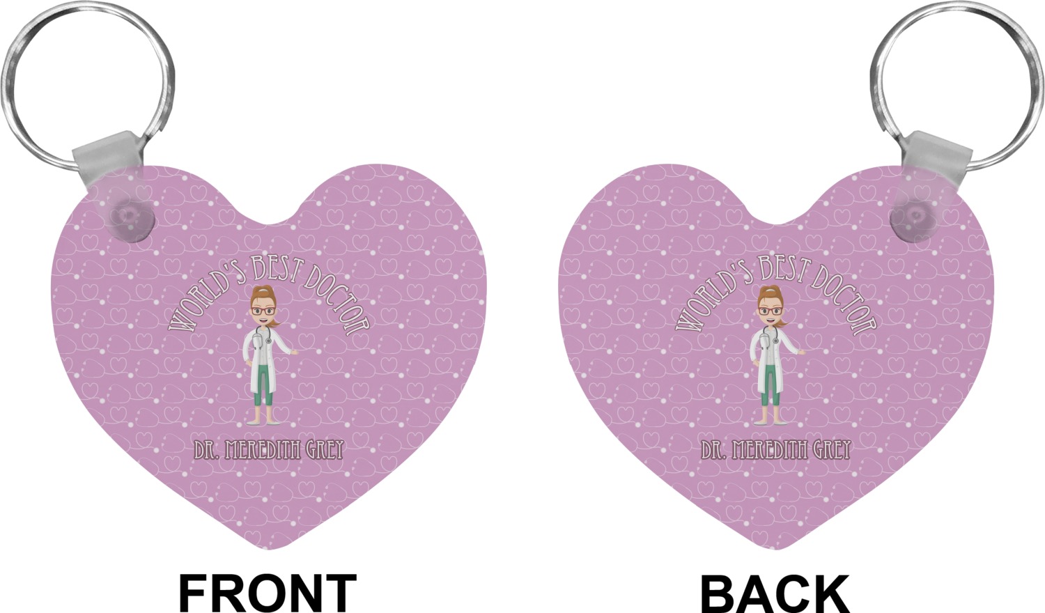 Our personalized keychains attach to the included metal, split key ring with a plastic, removable snap. Since a metal ring is included with your purchase, you have the liberty to keep your keys together on the ring, with or without your unique keychain. We offer this keychain in three different shapes: circle, heart, or diamond. We print your personalized design(s) on both sides of the key chain, and the surface has a glossy, reflective finish that only emphasizes your design. Each keychain is approximately 2.25 by 2.25 inches.