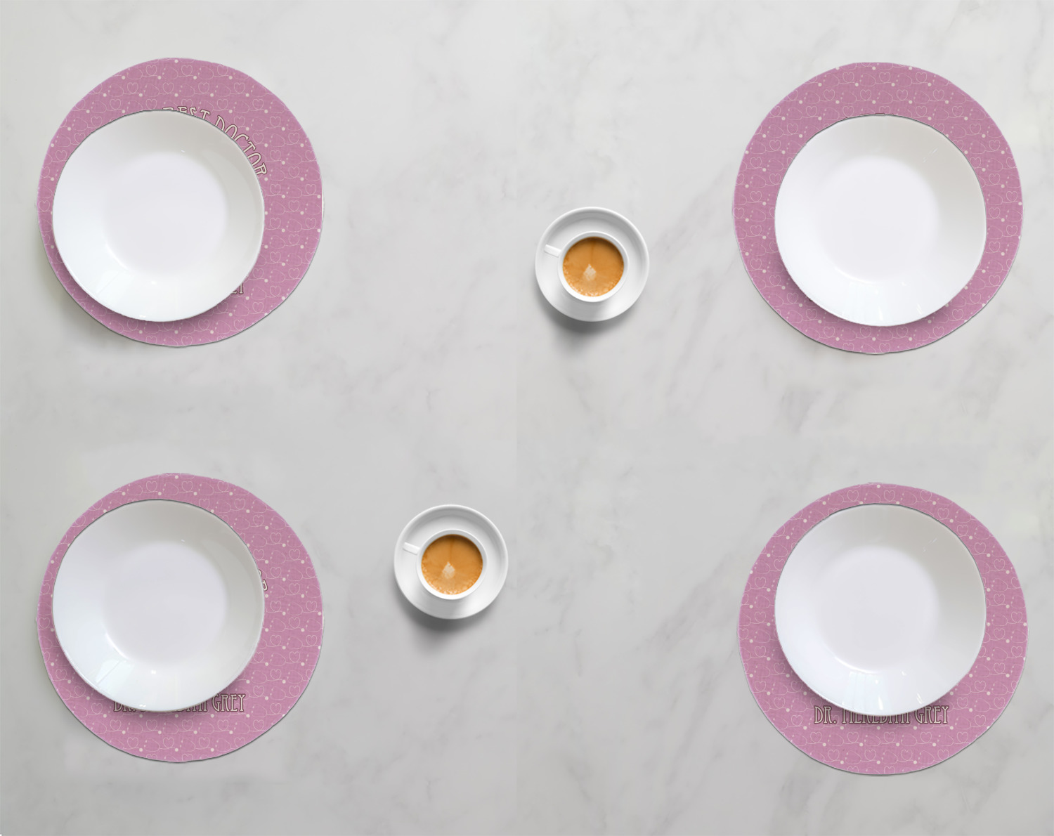 The design features an avatar doctor that is wearing a labcoat. You can easily change her hair color and skin tone. You can even swap her out for a male doctor! The background has a subtle pattern made out of stethescopes and is a fun purple. You personalization goes on top and below the avatar.
